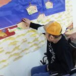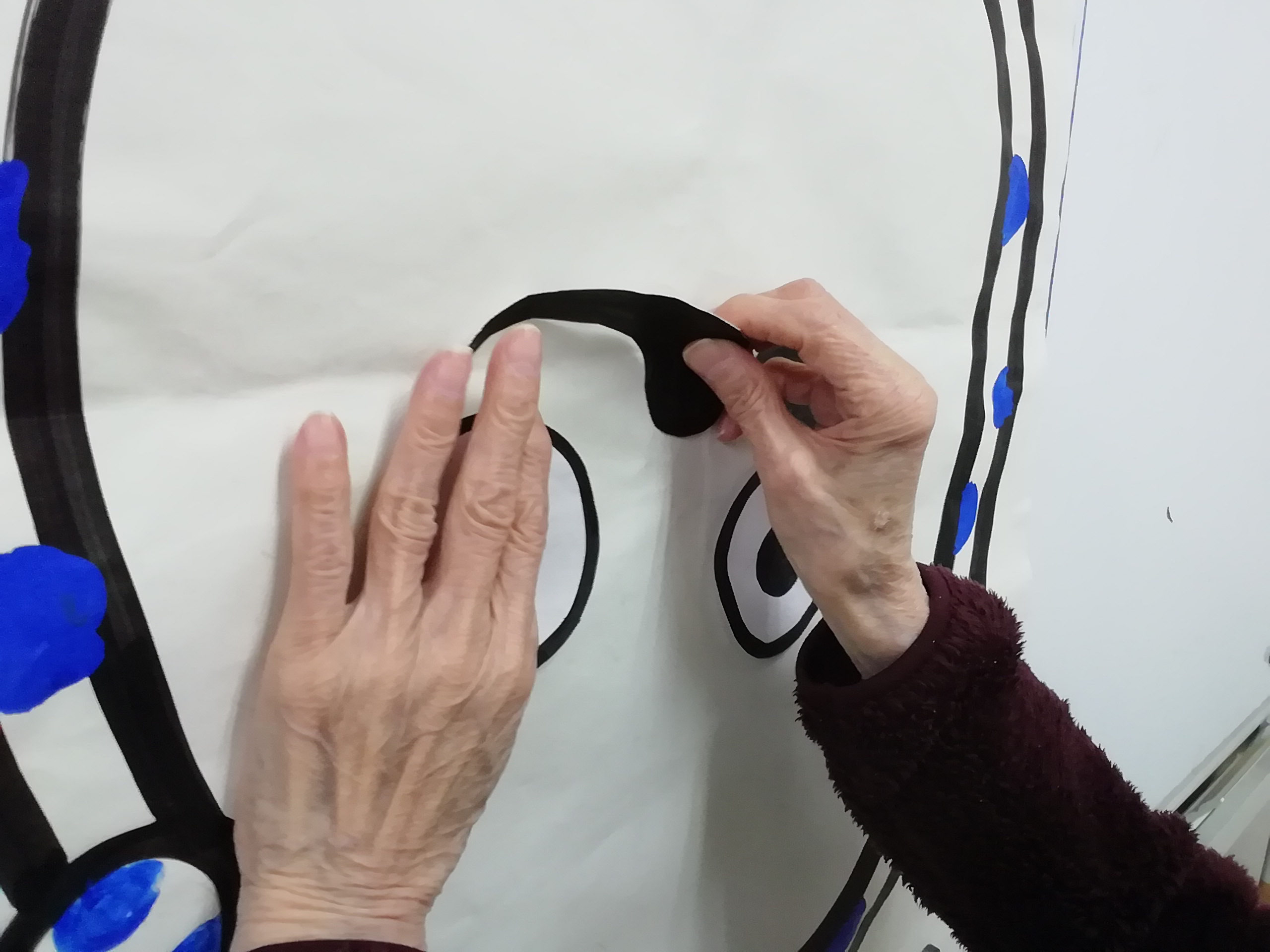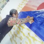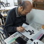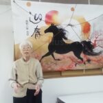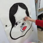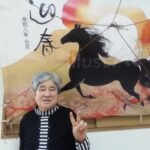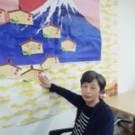 そして、今年作成した大凧の前で「ハイ、ポーズ」
