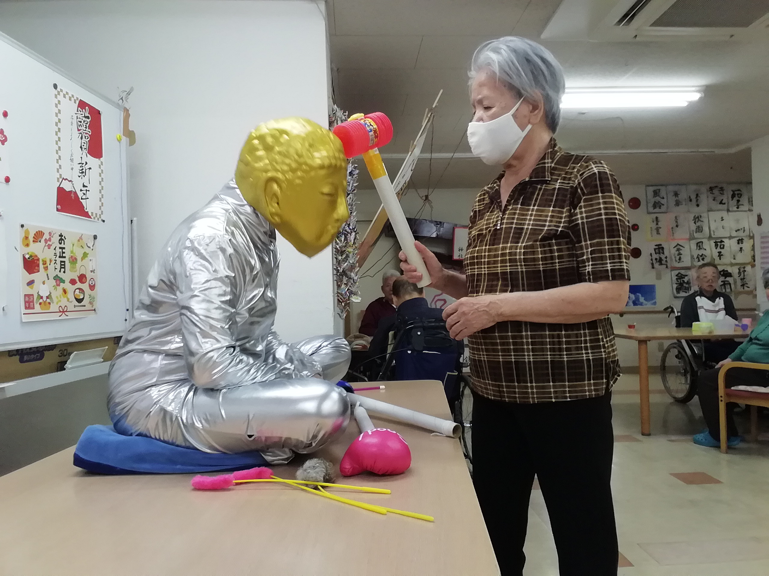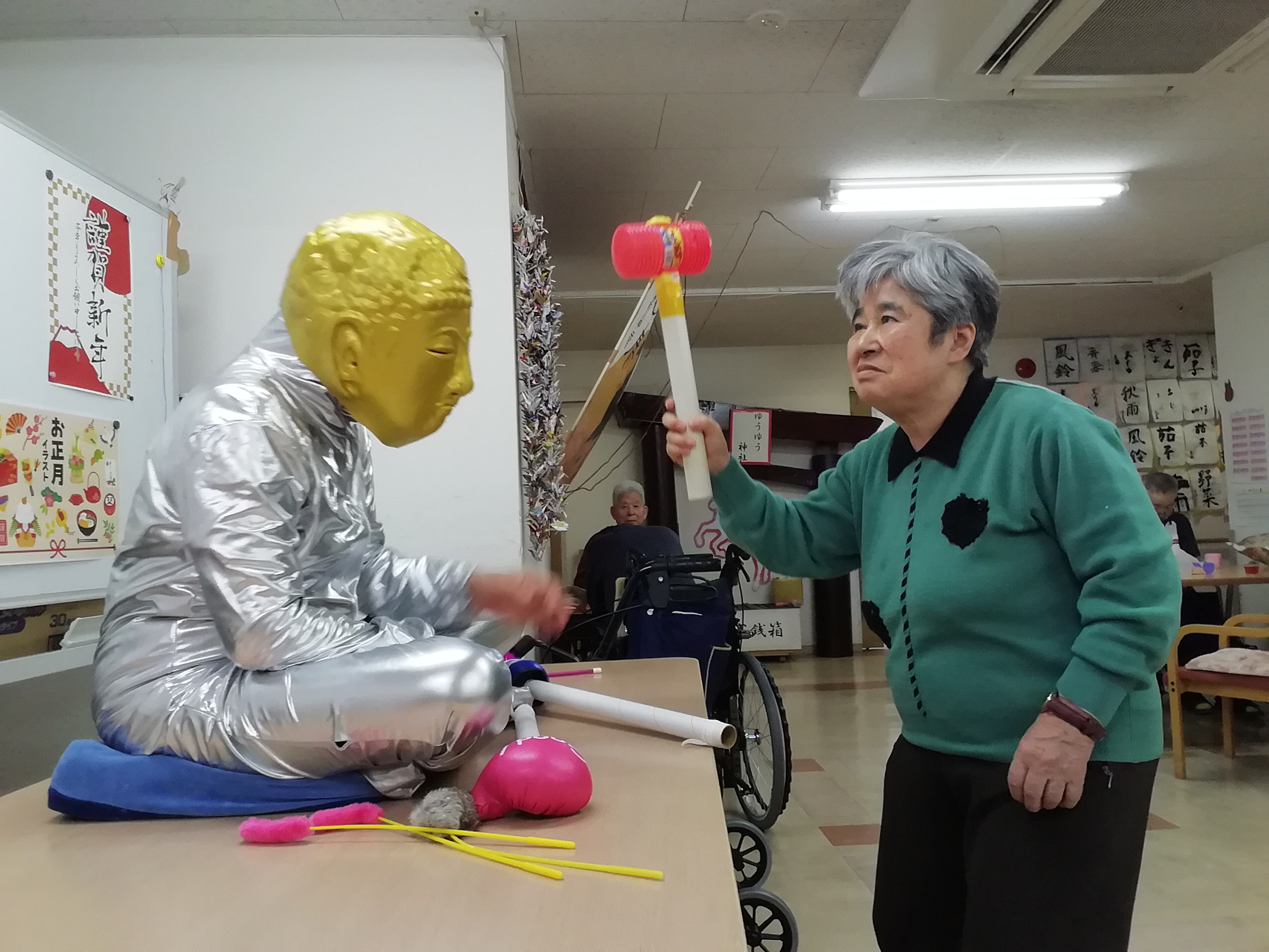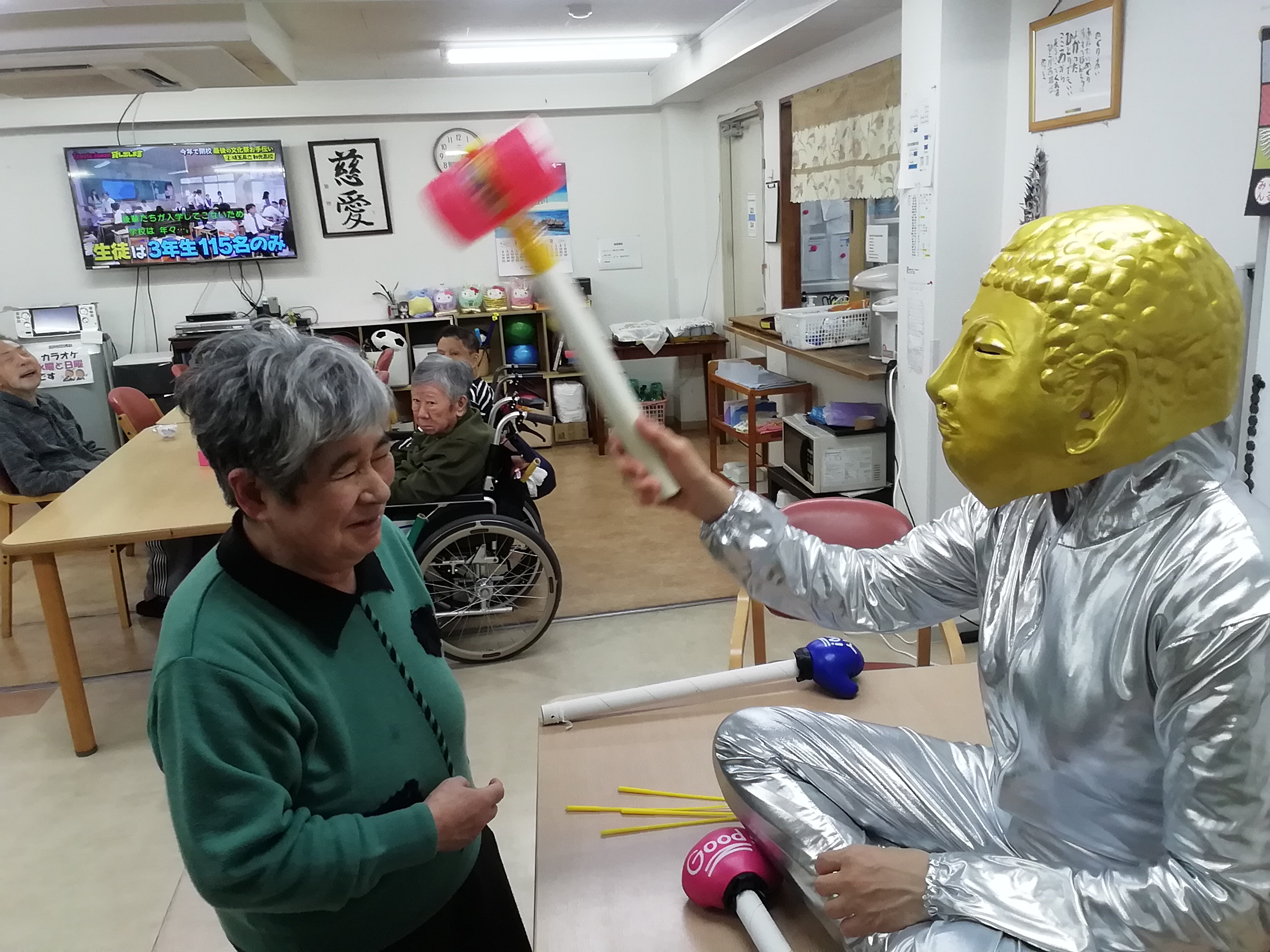 まずは大仏様とじゃんけんをして、勝ったほうがピコピコハンマーで相手の頭をコツン・・。