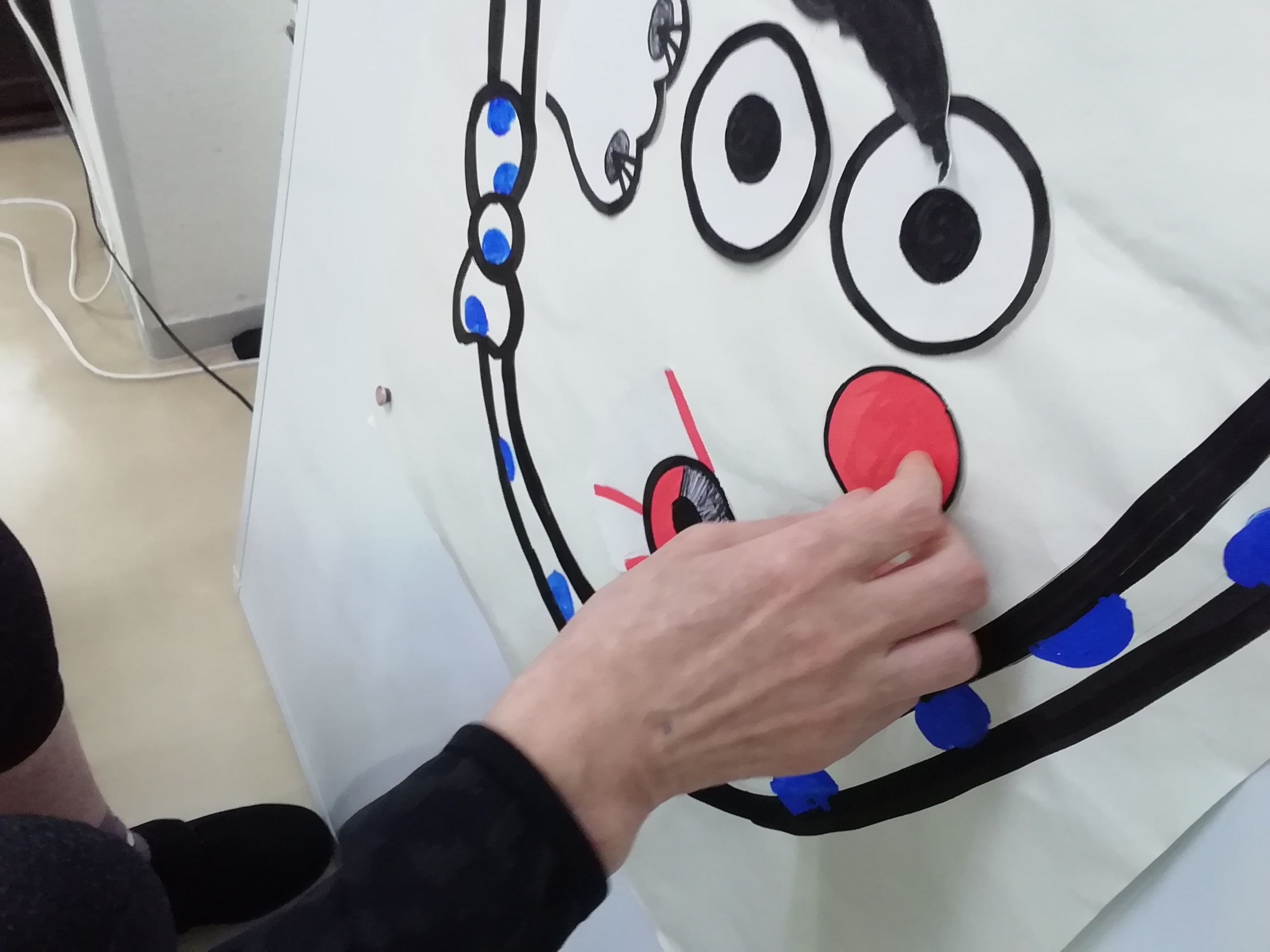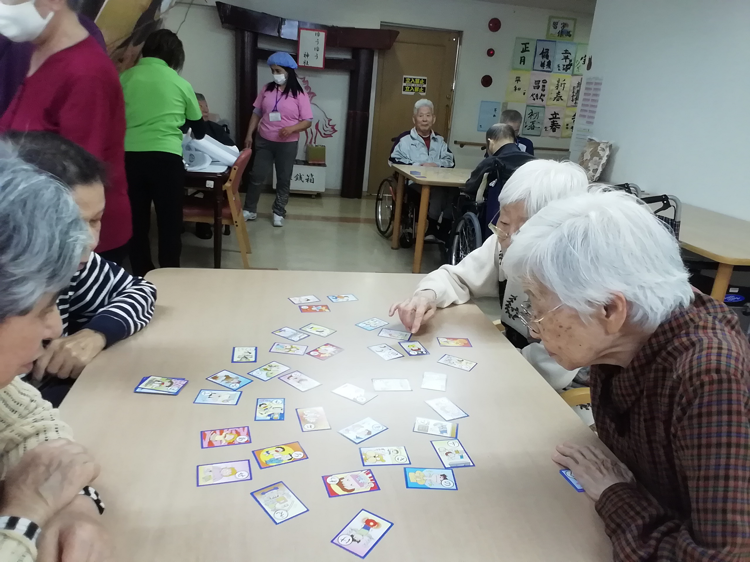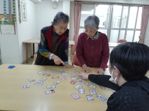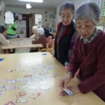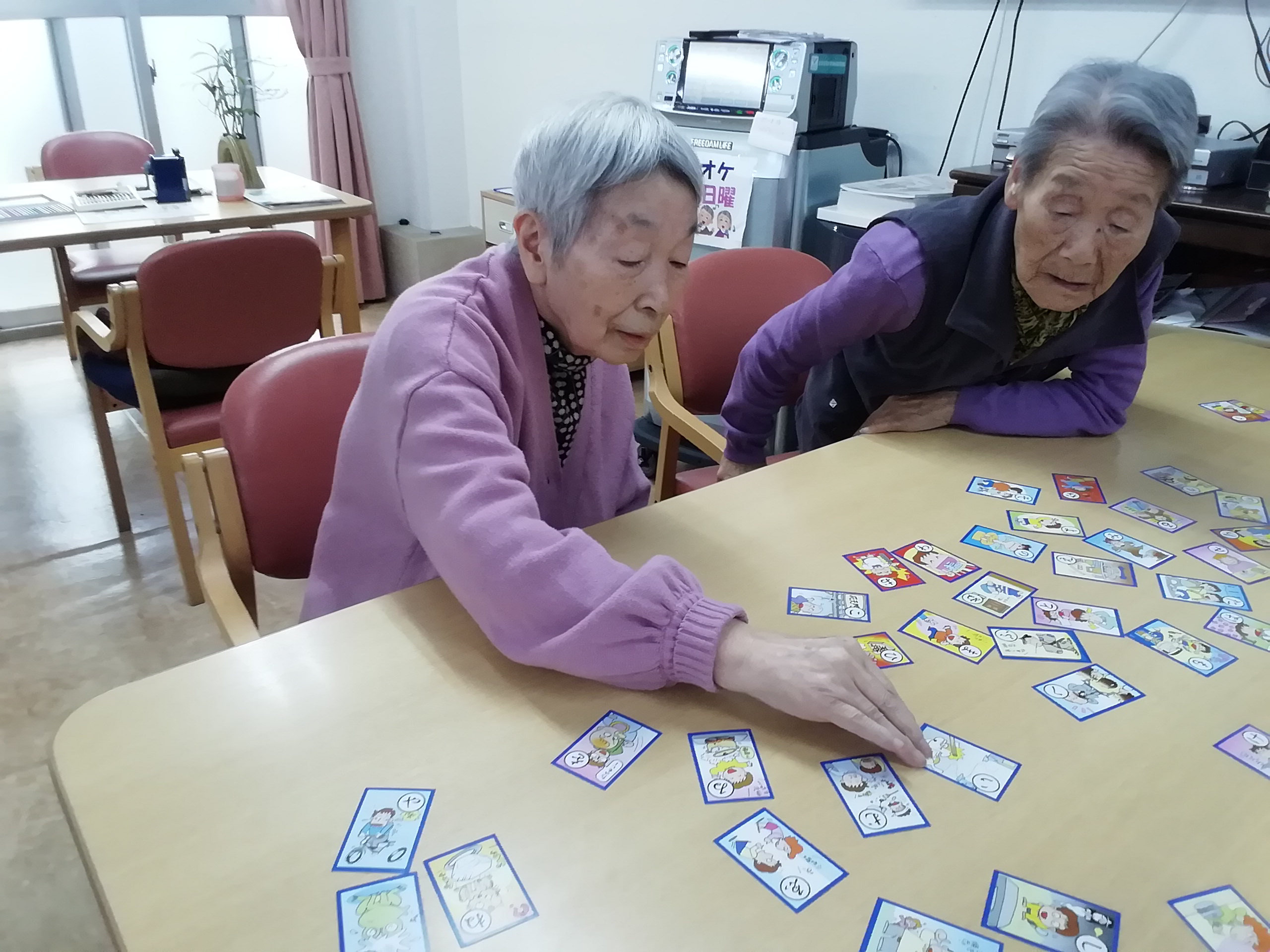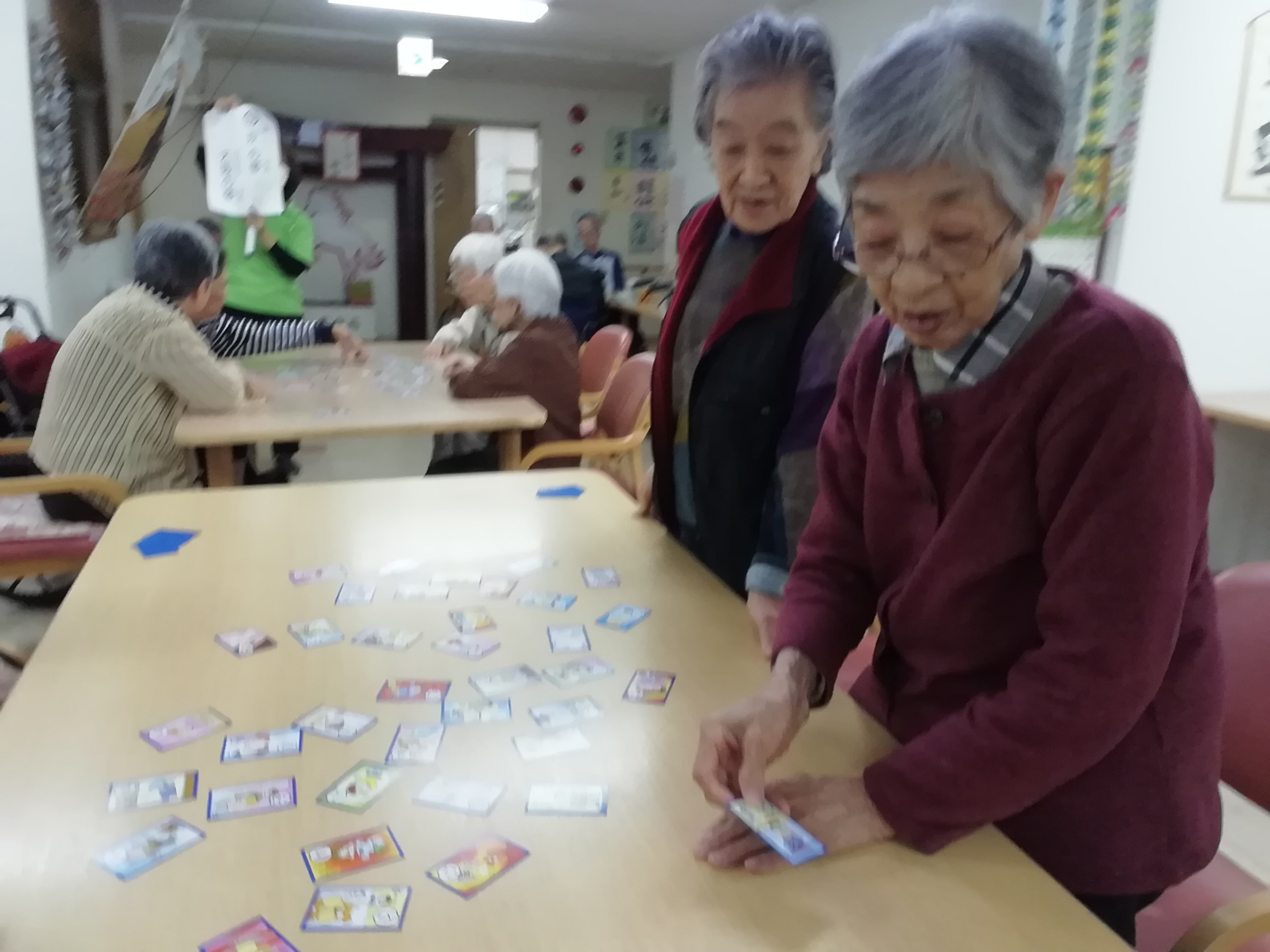 拡大した読み札をお見せしながら、いろはかるたを行いました。