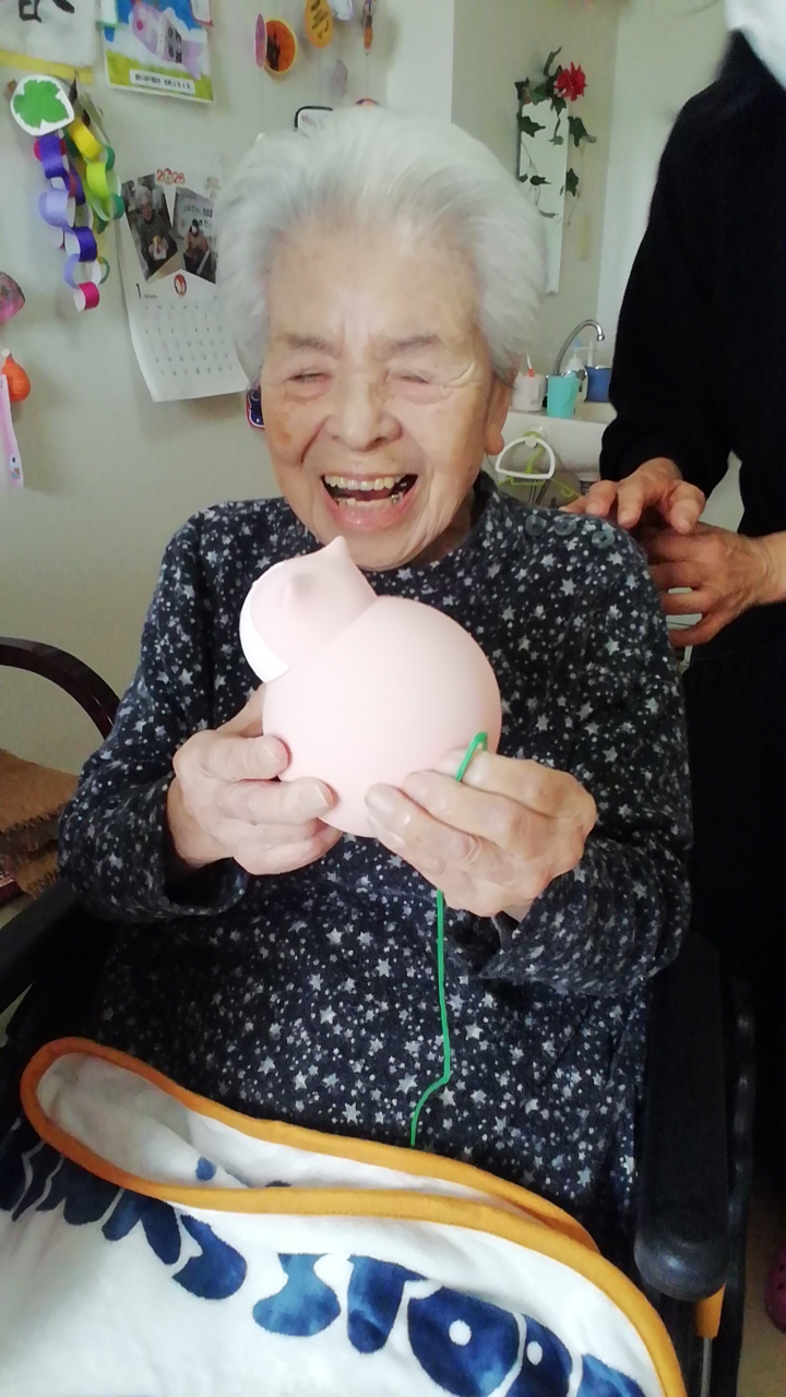 ご覧ください、103歳の笑顔! 素晴らしいです!