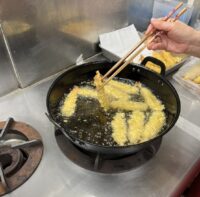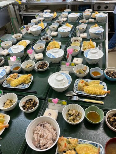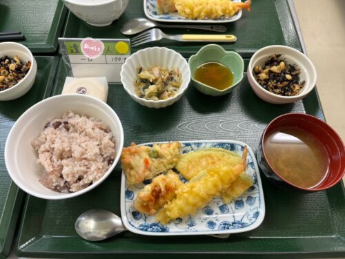 おめでたい、お赤飯に揚げたての天ぷらでした。