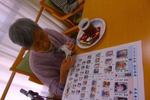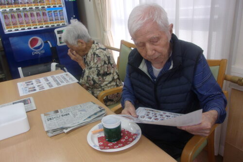 ご利用者様が熱心にご覧になっているのは 長寿番付表です