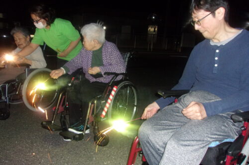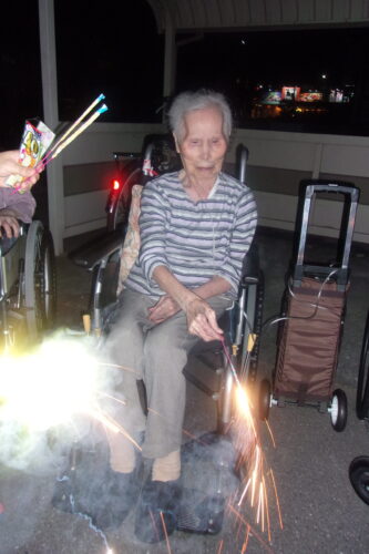 9月の敬老の日には 祝敬老会を開催しました 夜には🎇花火大会🎇を行いました