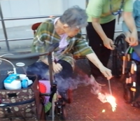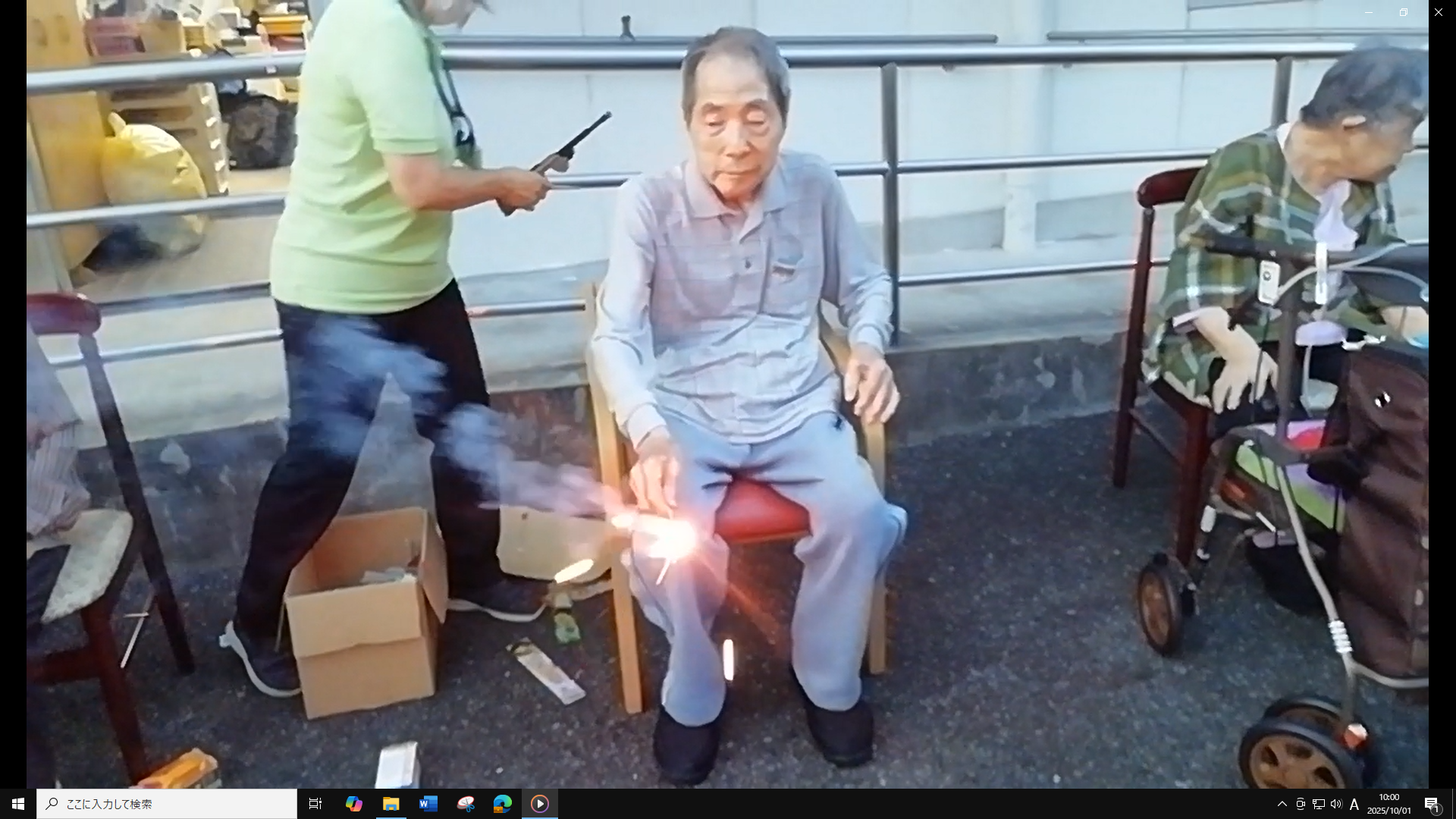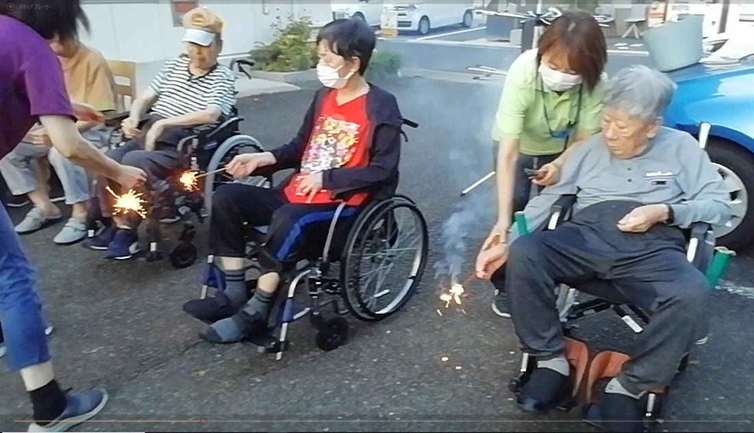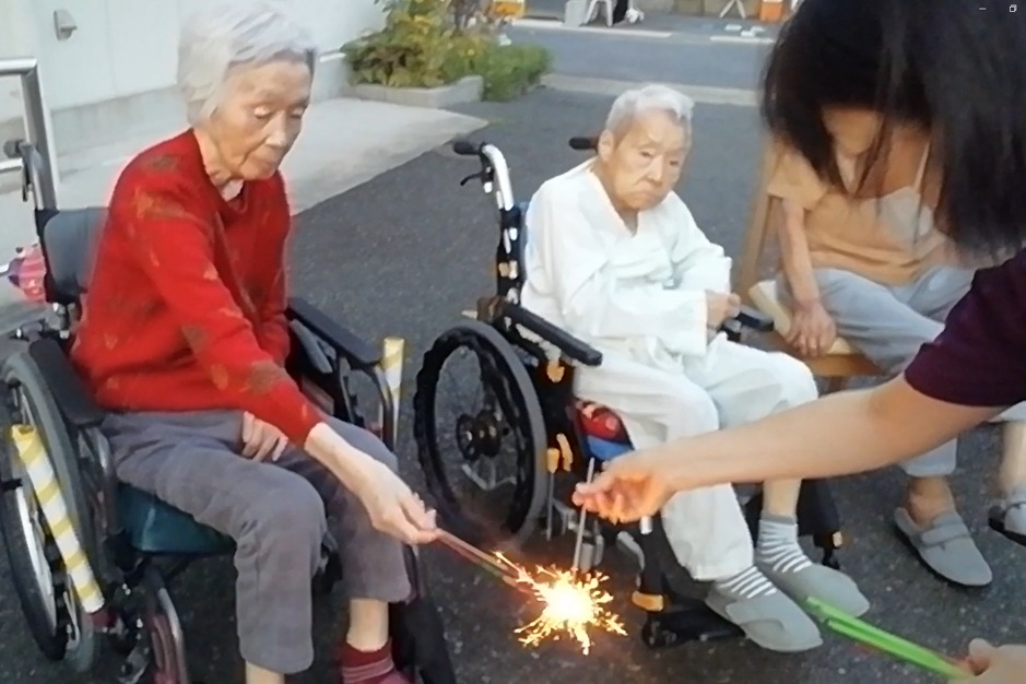 涼しくなった夕方、少し暗くなったころ、花火を楽しみました。