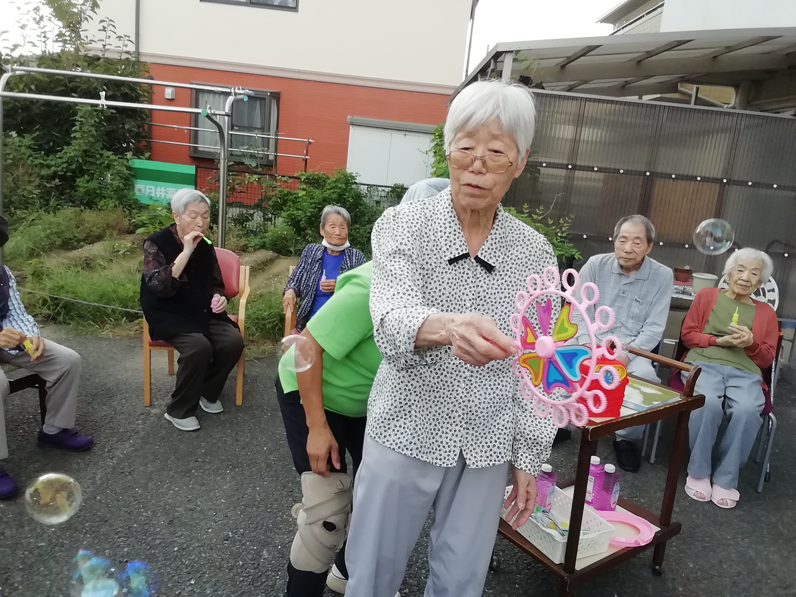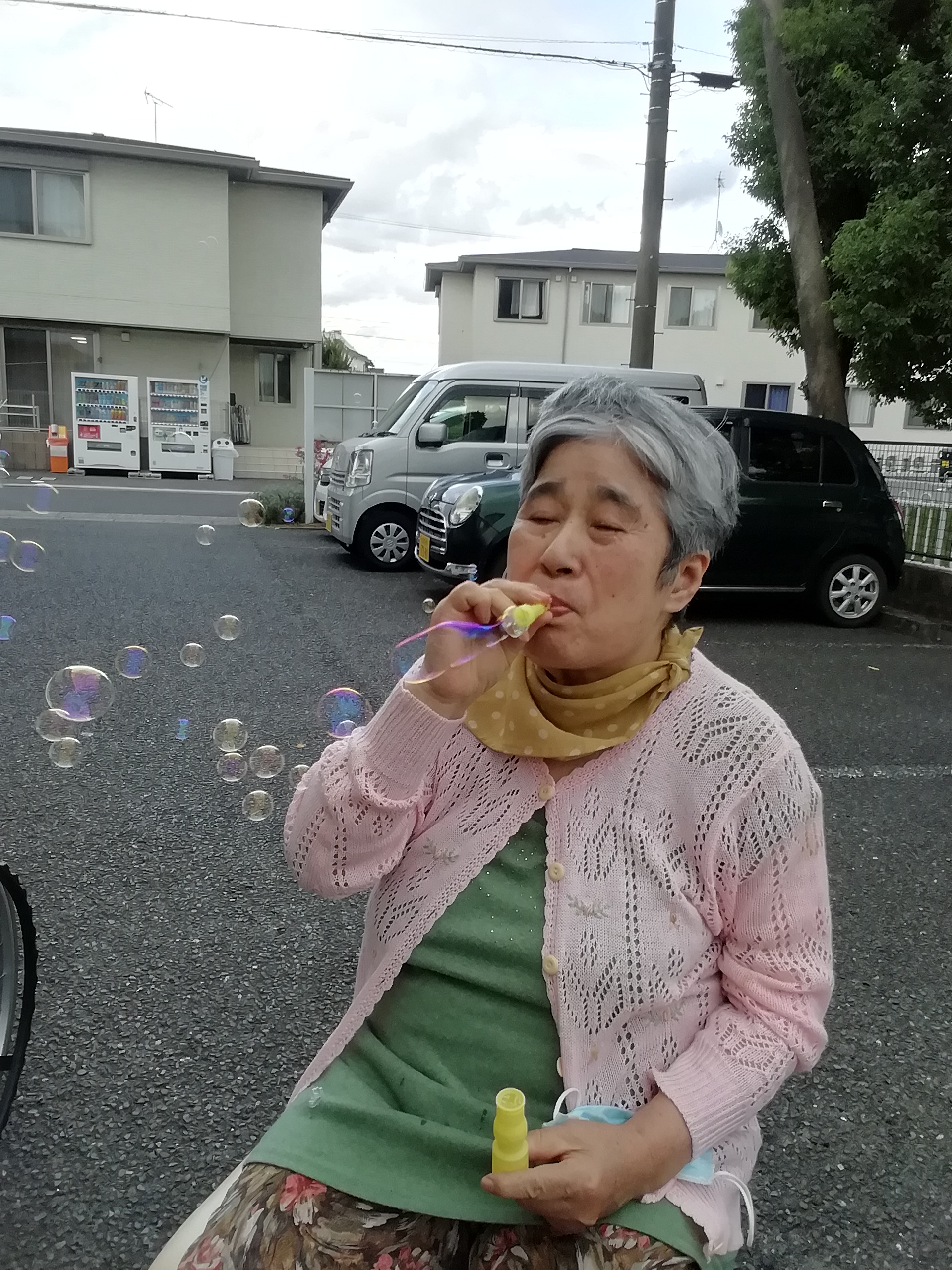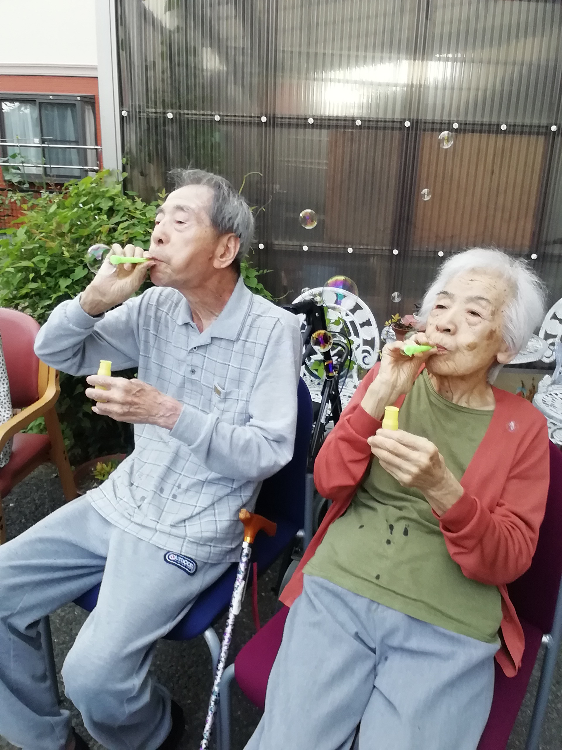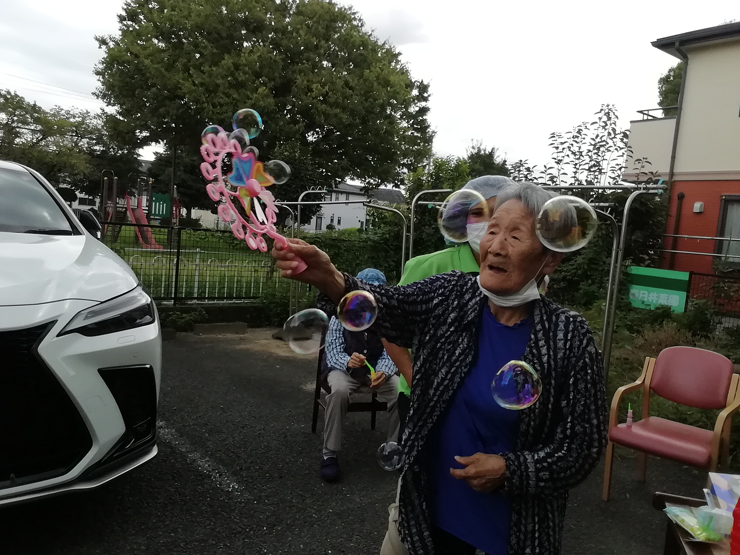 過行く夏と秋の気配を感じながら、子どもの頃を思い出して、みんなでしゃぼん玉を飛ばしましょう~。