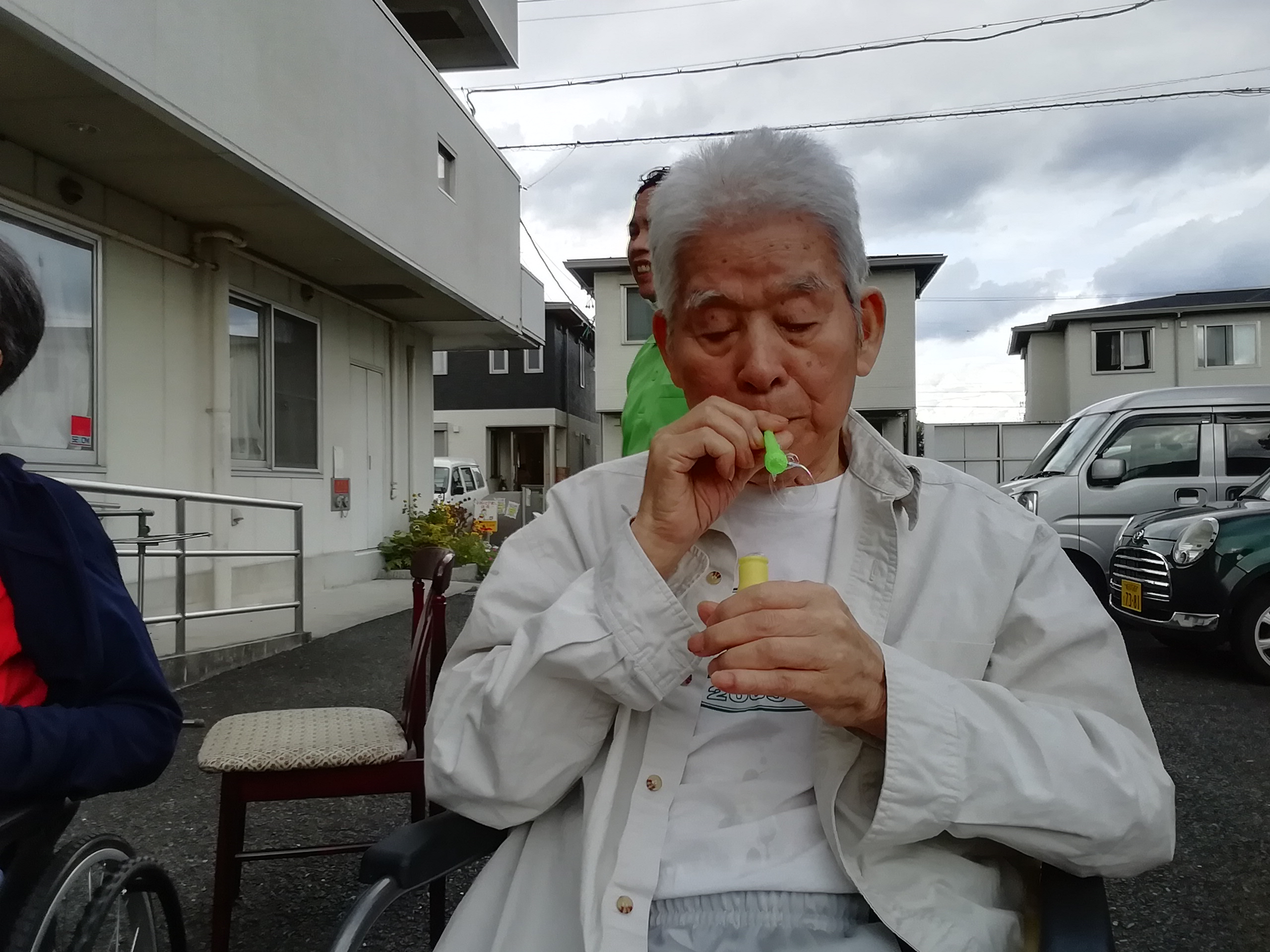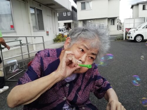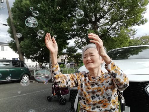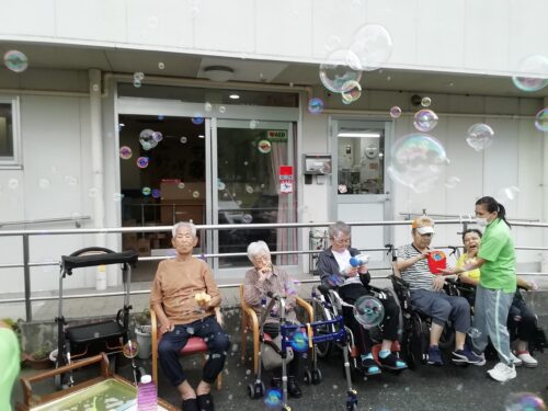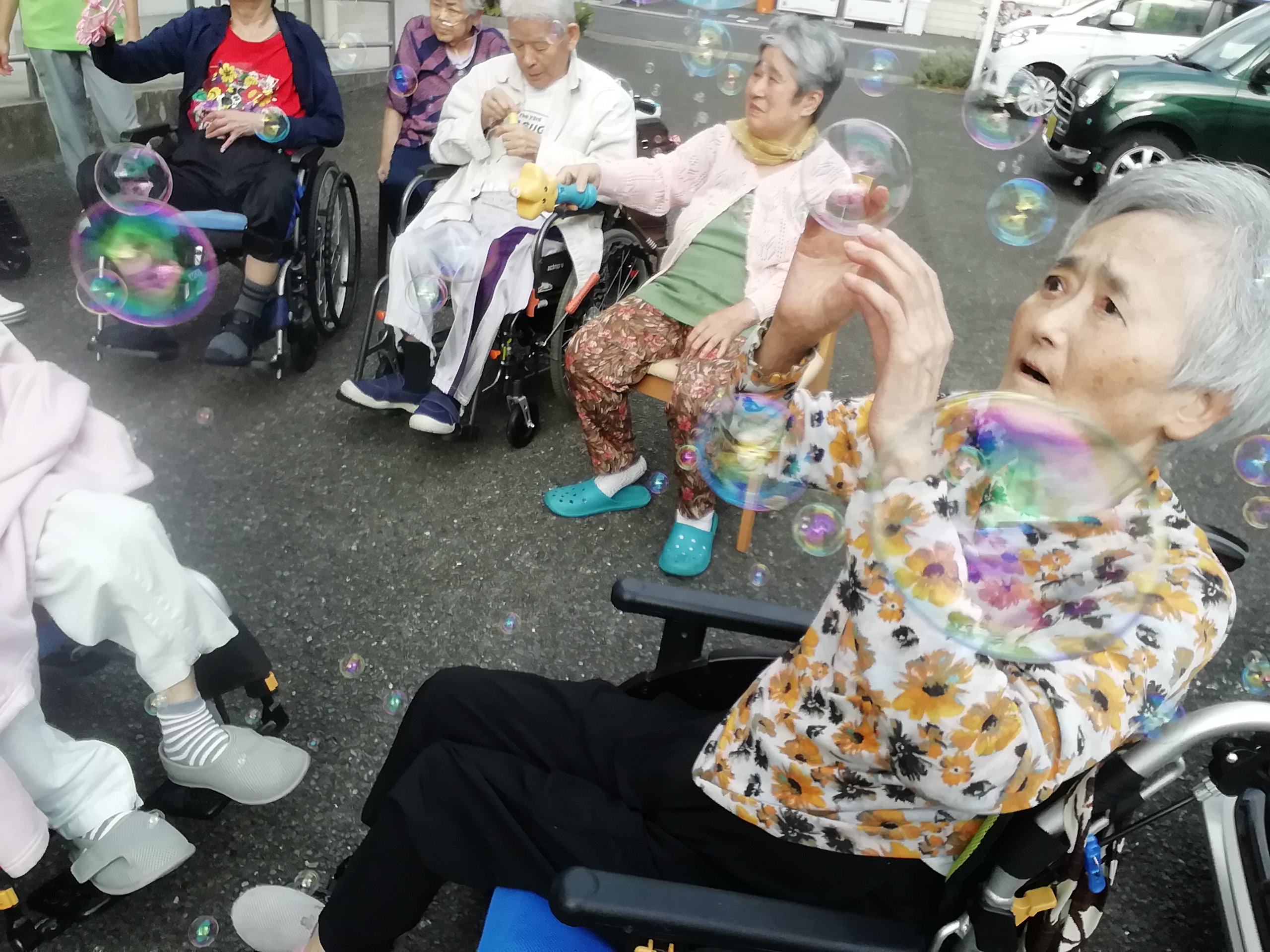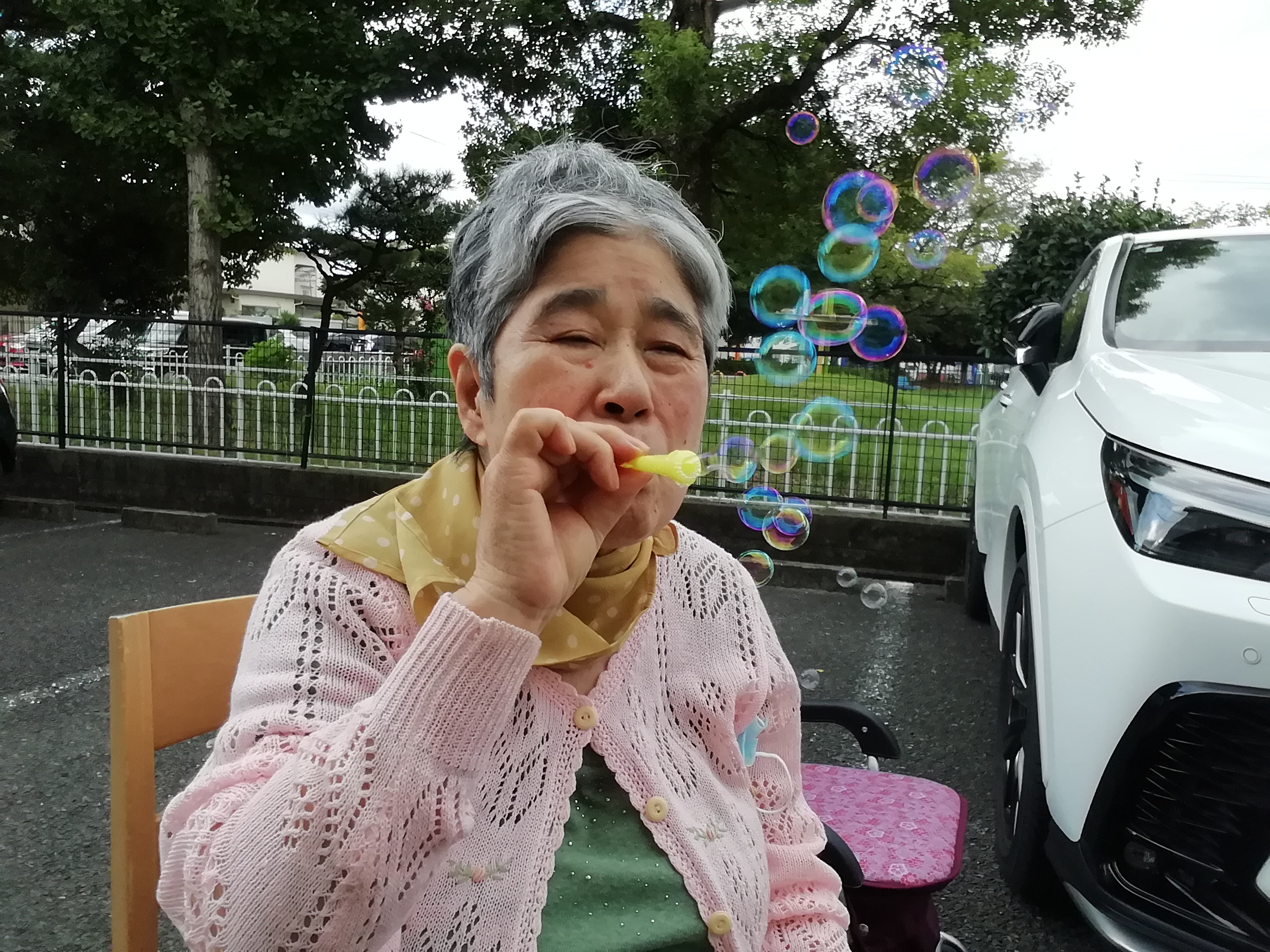 過行く夏と秋の気配を感じながら、子どもの頃を思い出して、みんなでしゃぼん玉を飛ばしましょう~。