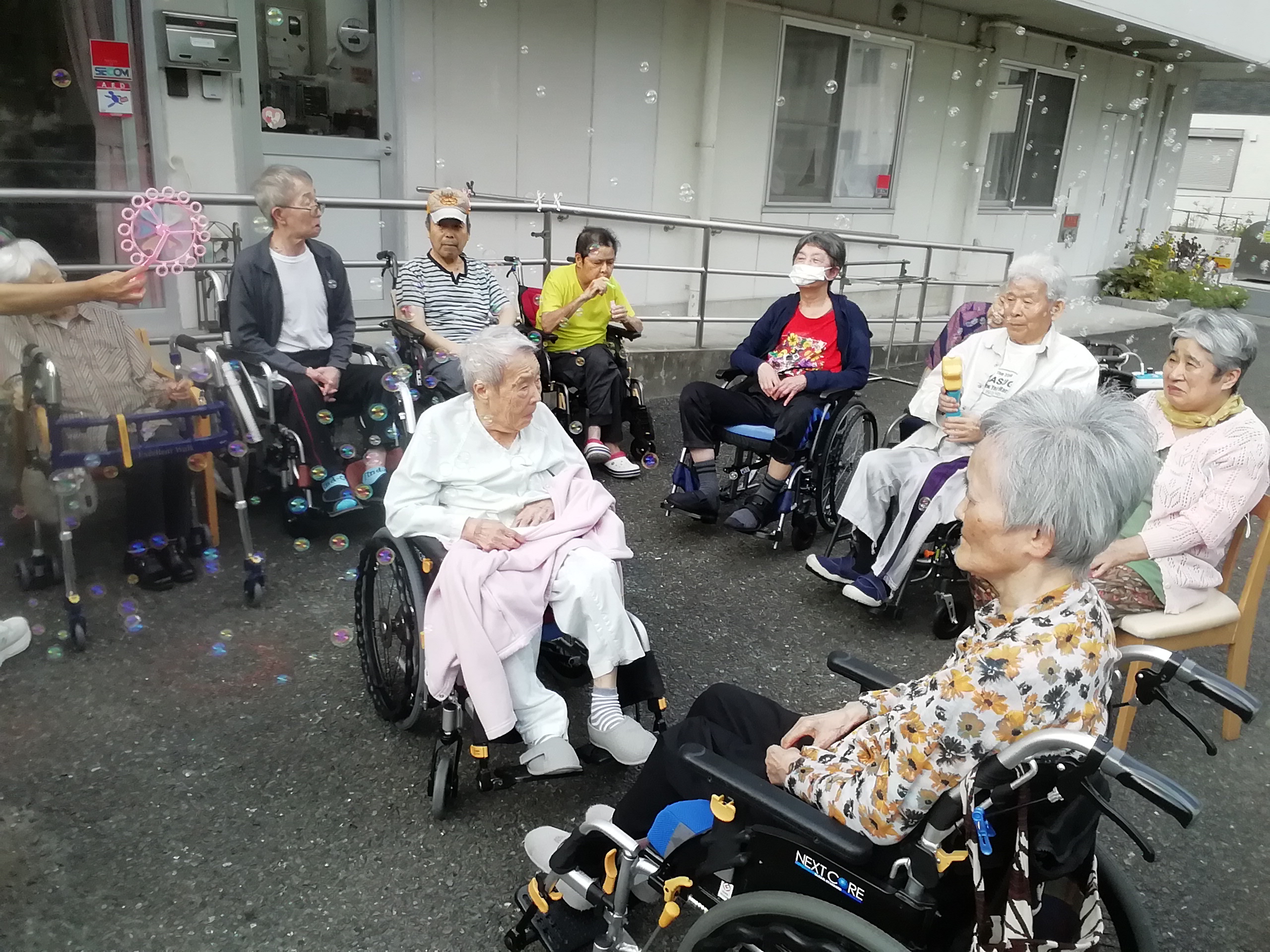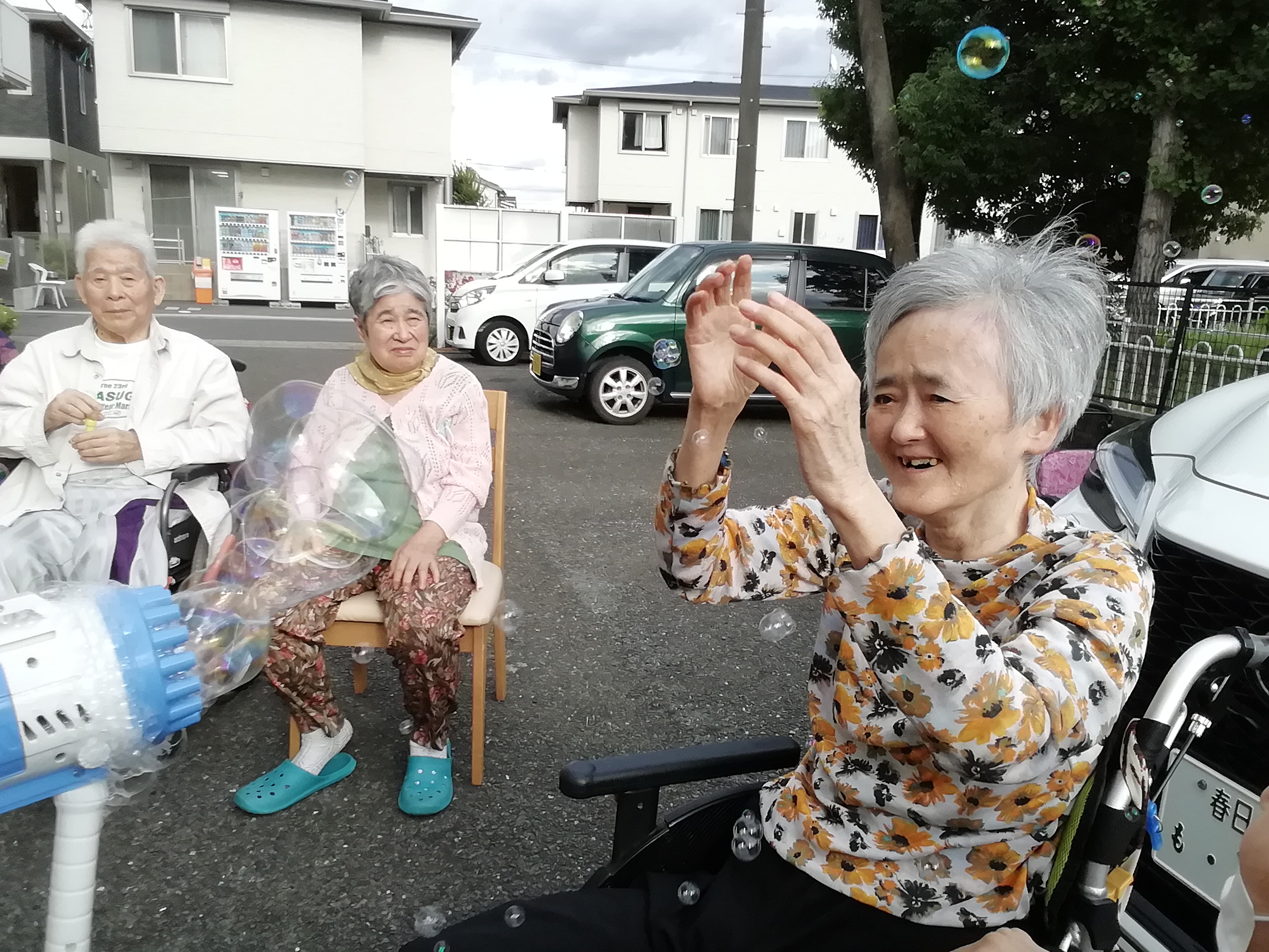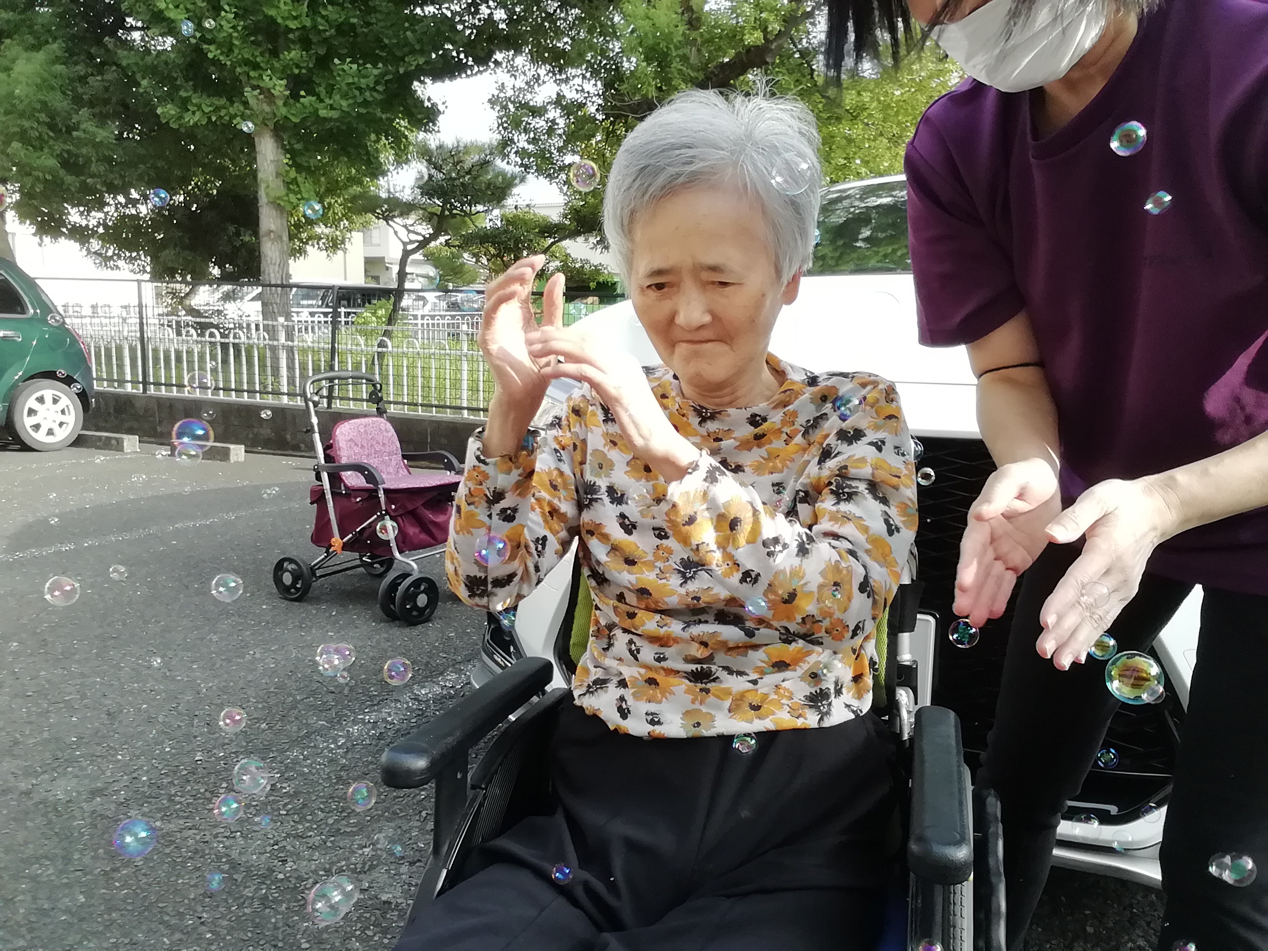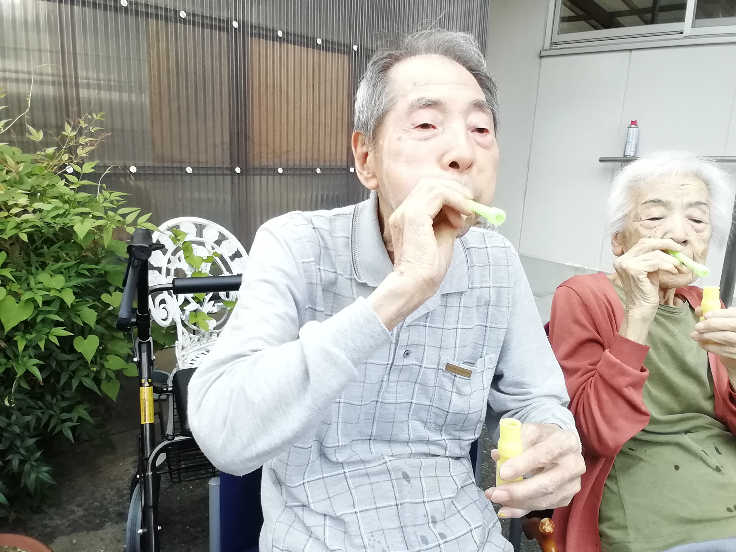 過行く夏と秋の気配を感じながら、子どもの頃を思い出して、みんなでしゃぼん玉を飛ばしましょう~。