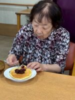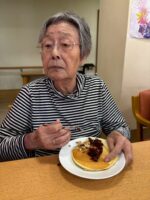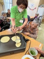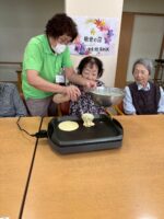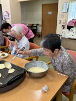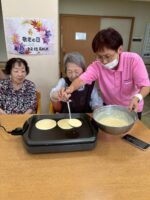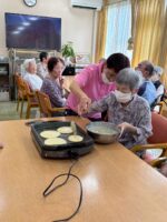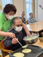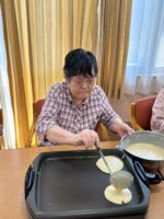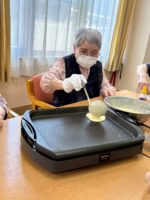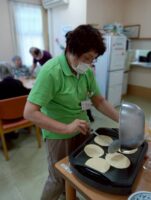 職員とご利用者様で何か一緒に出来ないかな?とホットケーキを焼きました。