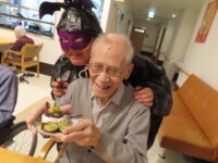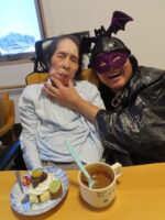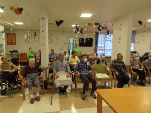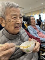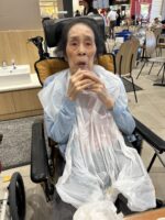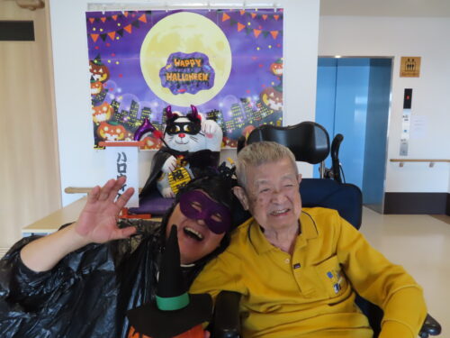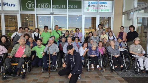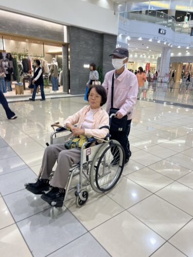今日のために来てくださって、歩き疲れたご家族を、車イスで押して差し上げる優しいご入居者様にほっこり。