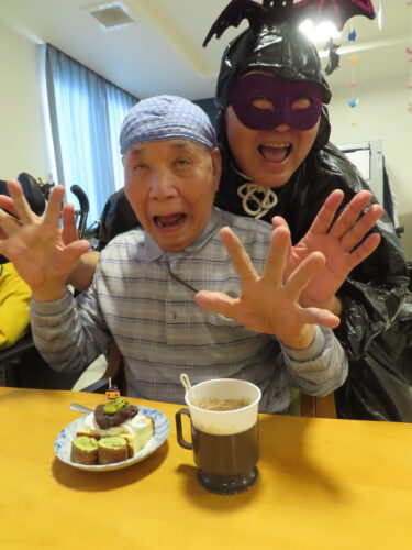 ハロウィンのお化けに職員の両腕が操られてしまいます。