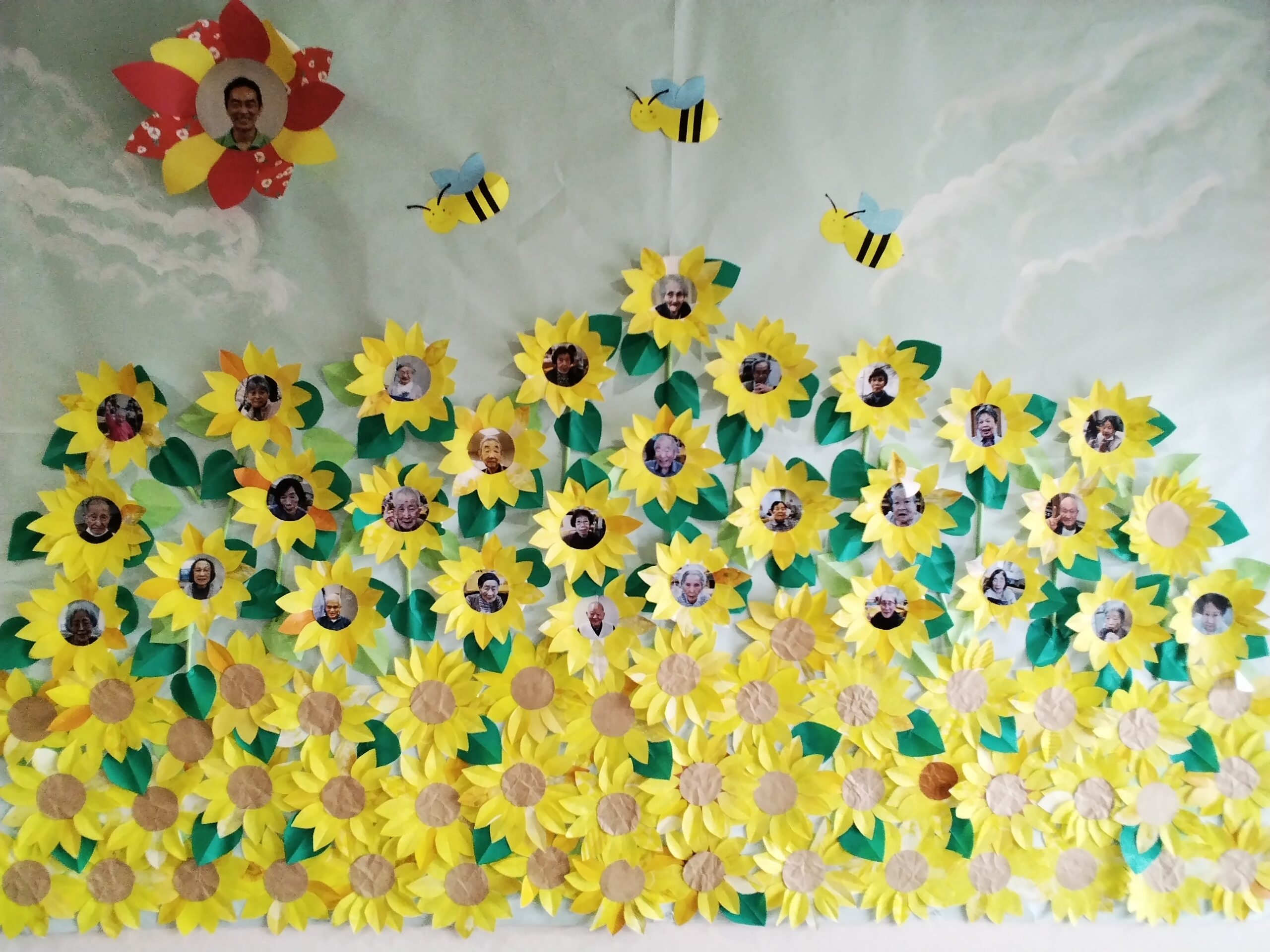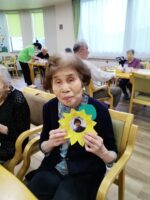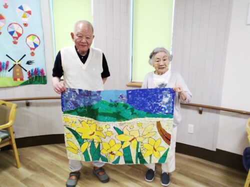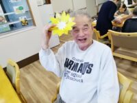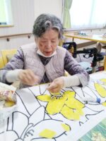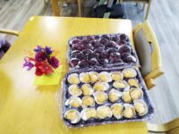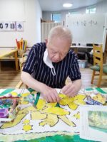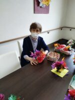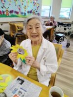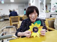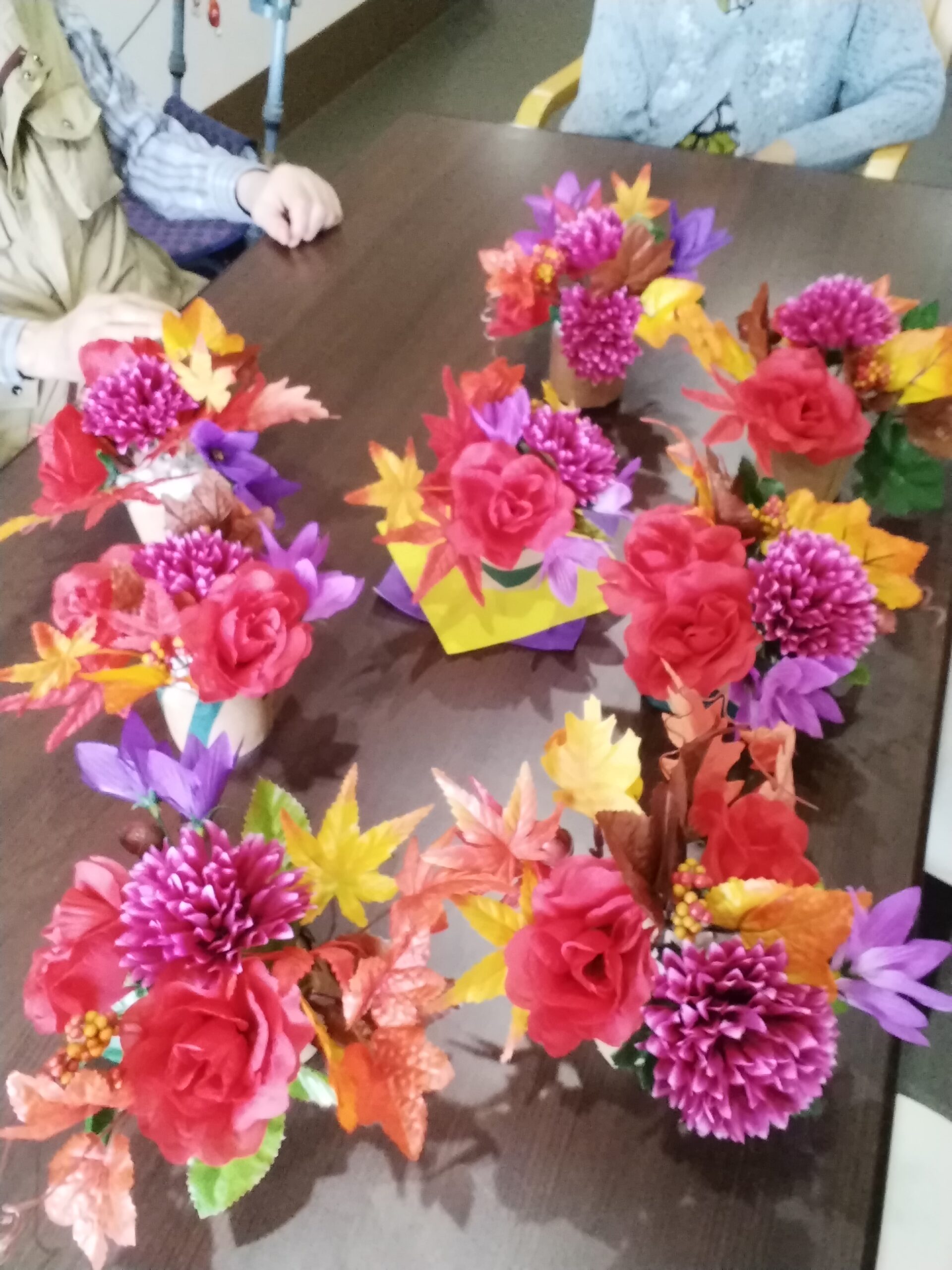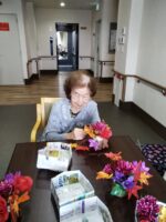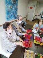 食堂のテーブルに飾りました。みなさん「きれい、かわいい」と喜ばれお部屋に飾りたいと言われる方もいました。