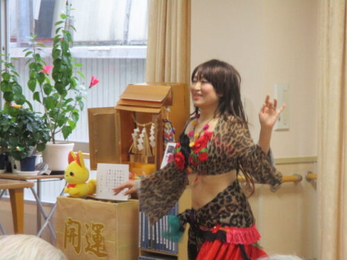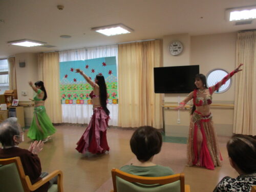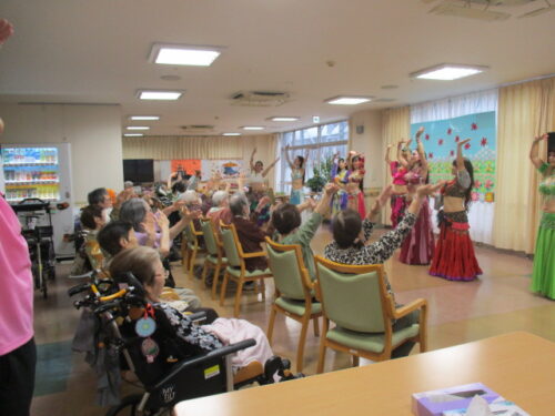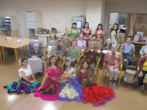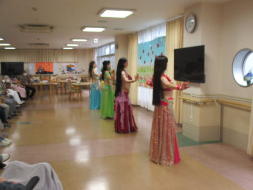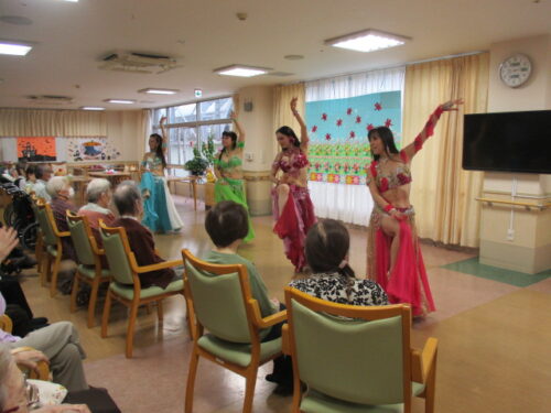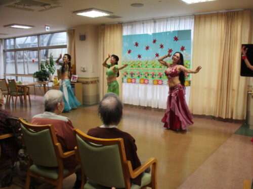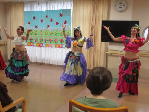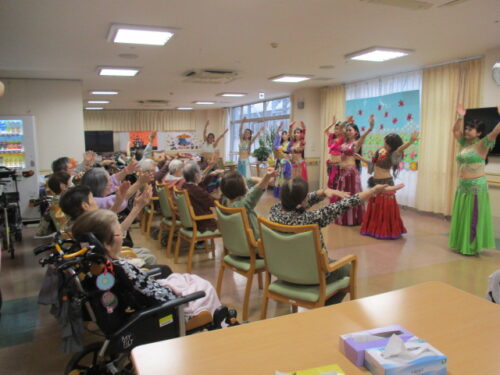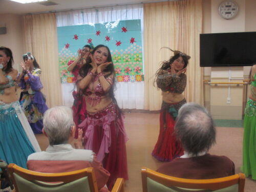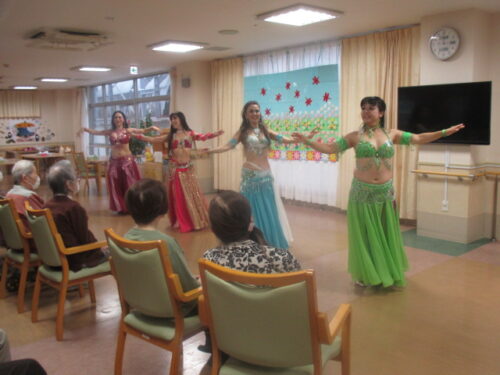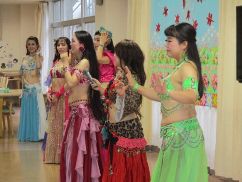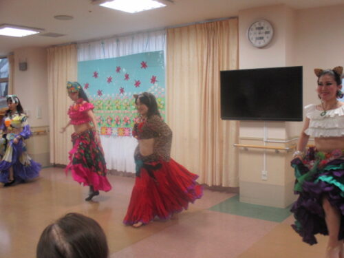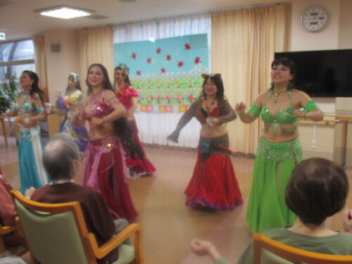 今回、柳ヶ瀬に来て下さる方の中には岐阜を中心に日本、海外でベリーダンスの活動をされている方もみえました。そんなスゴイ方がみえるなんてとスタッフ一同、ドキドキ。でもそれ以上に初めてベリーダンスを見るというスタッフも多く、利用者様と一緒にわくわくしていました。