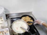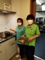 今月のヘルパーレクは職員手作りの唐揚げとスープです。