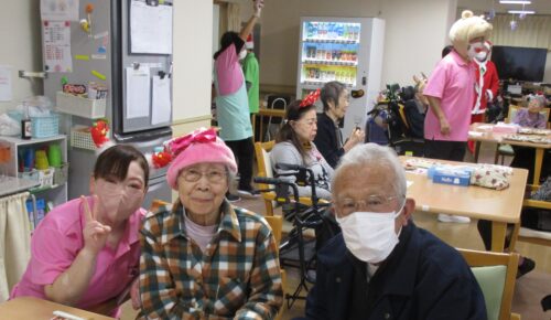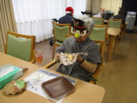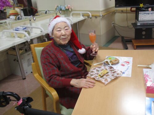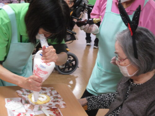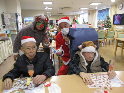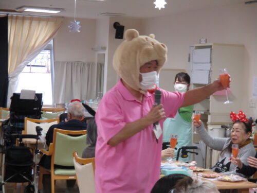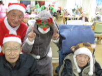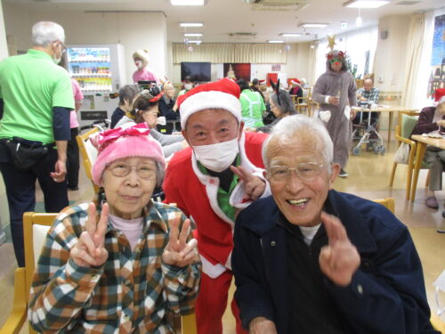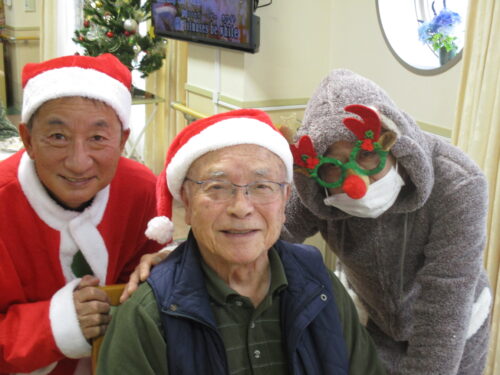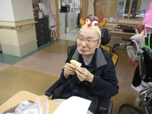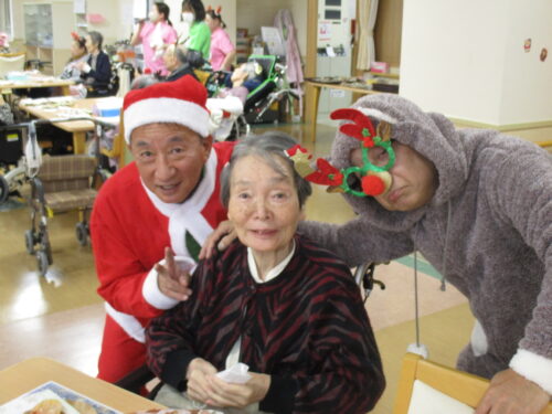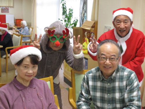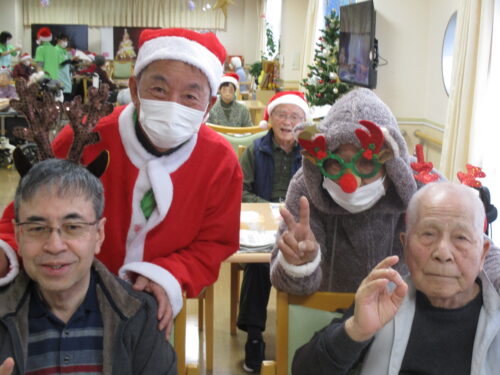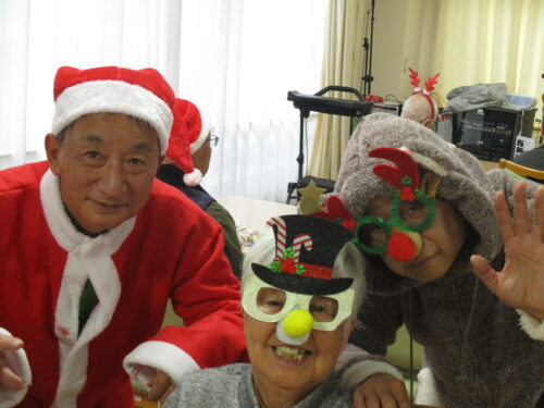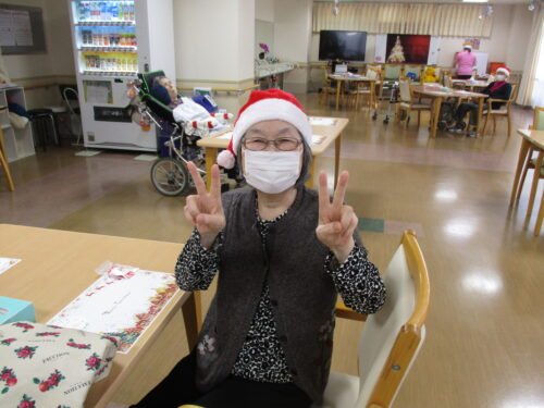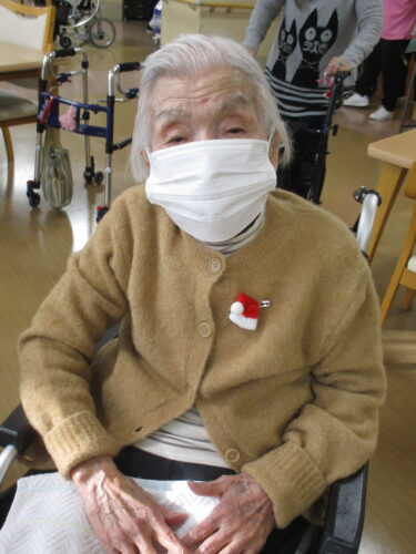 集まってみえた利用者様から順番にクリスマスらしい被り物をしてもらいます🌟