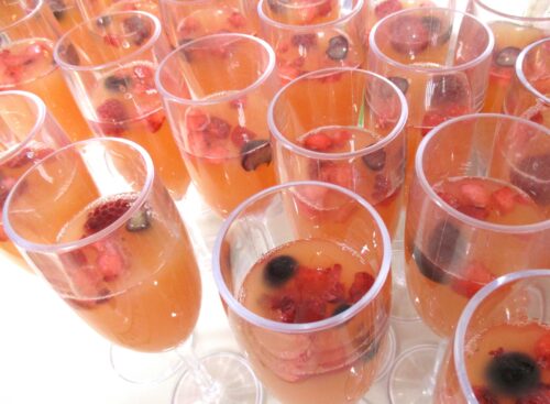カクテルはクリスマスカラーの「赤色」をメインにした物です。カクテルの中には苺やベリー、ブルーベリーが入ってます。