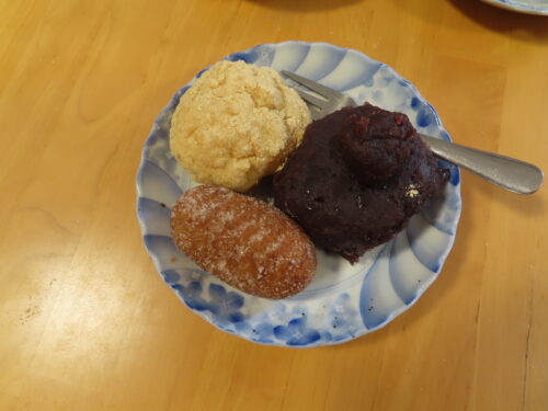 お餅は出せないですが、もち米の代わりにご飯を使って、おはぎ作りを行いました。