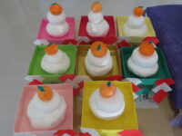 「こうかな?」「もう少し丸い方がお餅っぽくなる?」など、とても楽しそうに作られていました。
