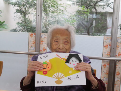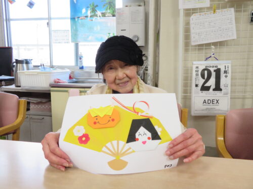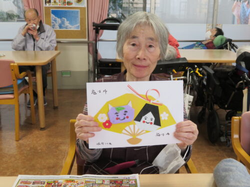 年明け、縁起の良い初笑いしていただきたく、福笑いを行いました。