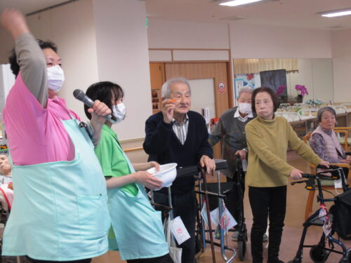 張り切って集まる利用者様たちの姿にやはり生きのいい(?)鬼がほしいと