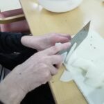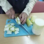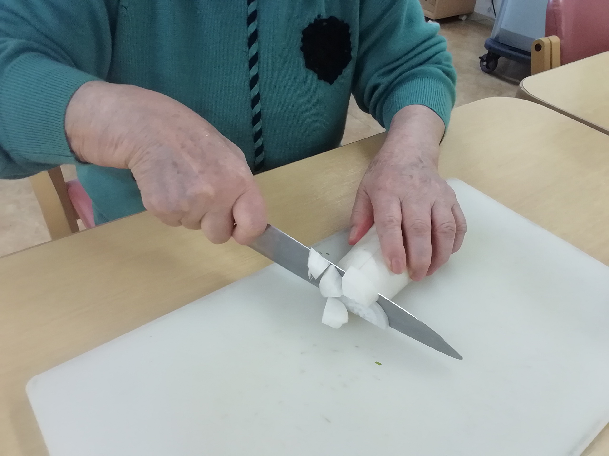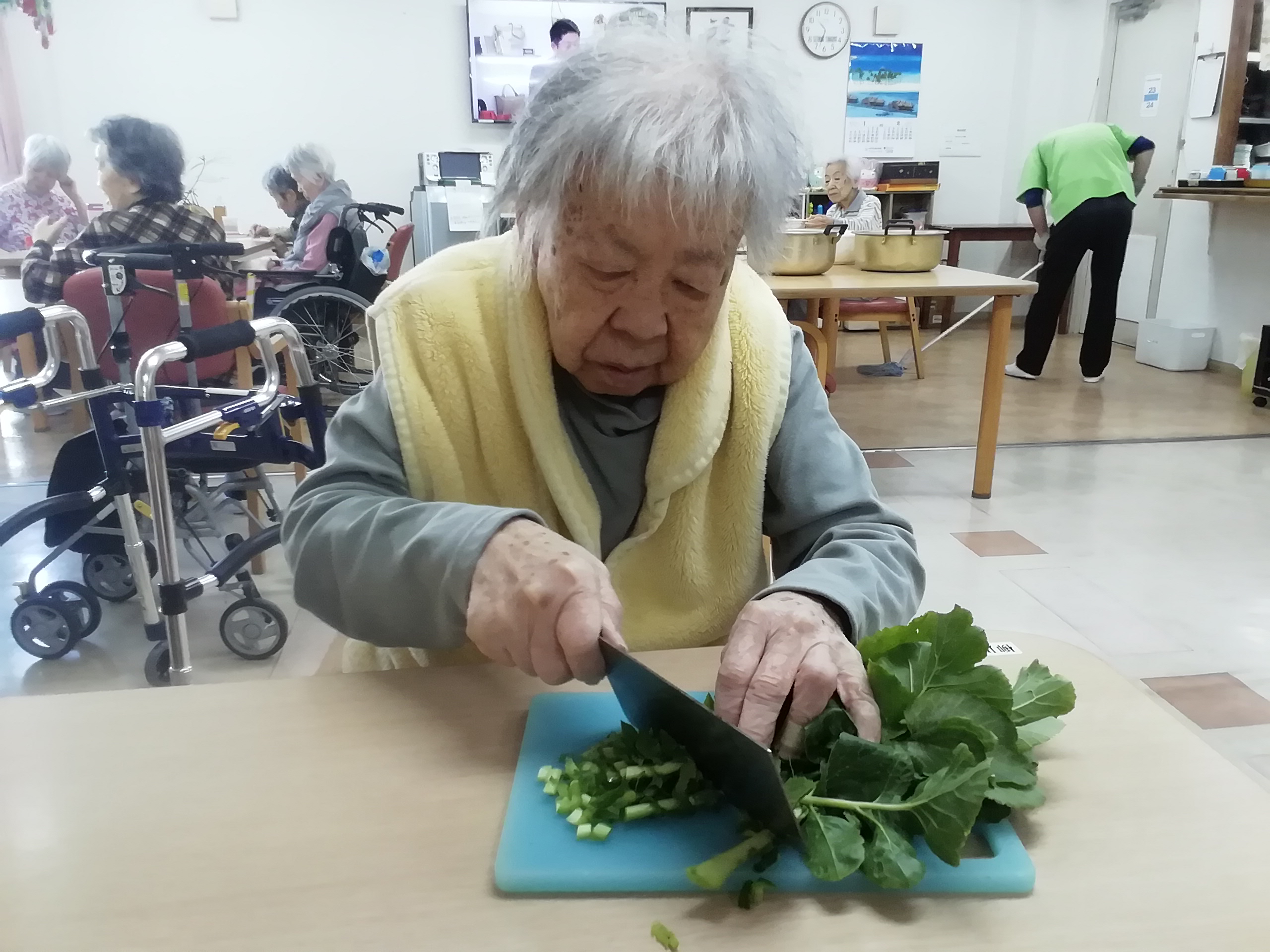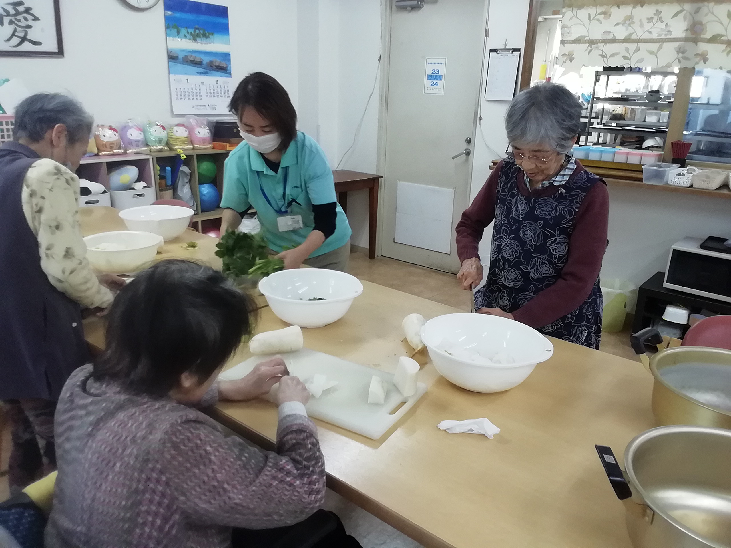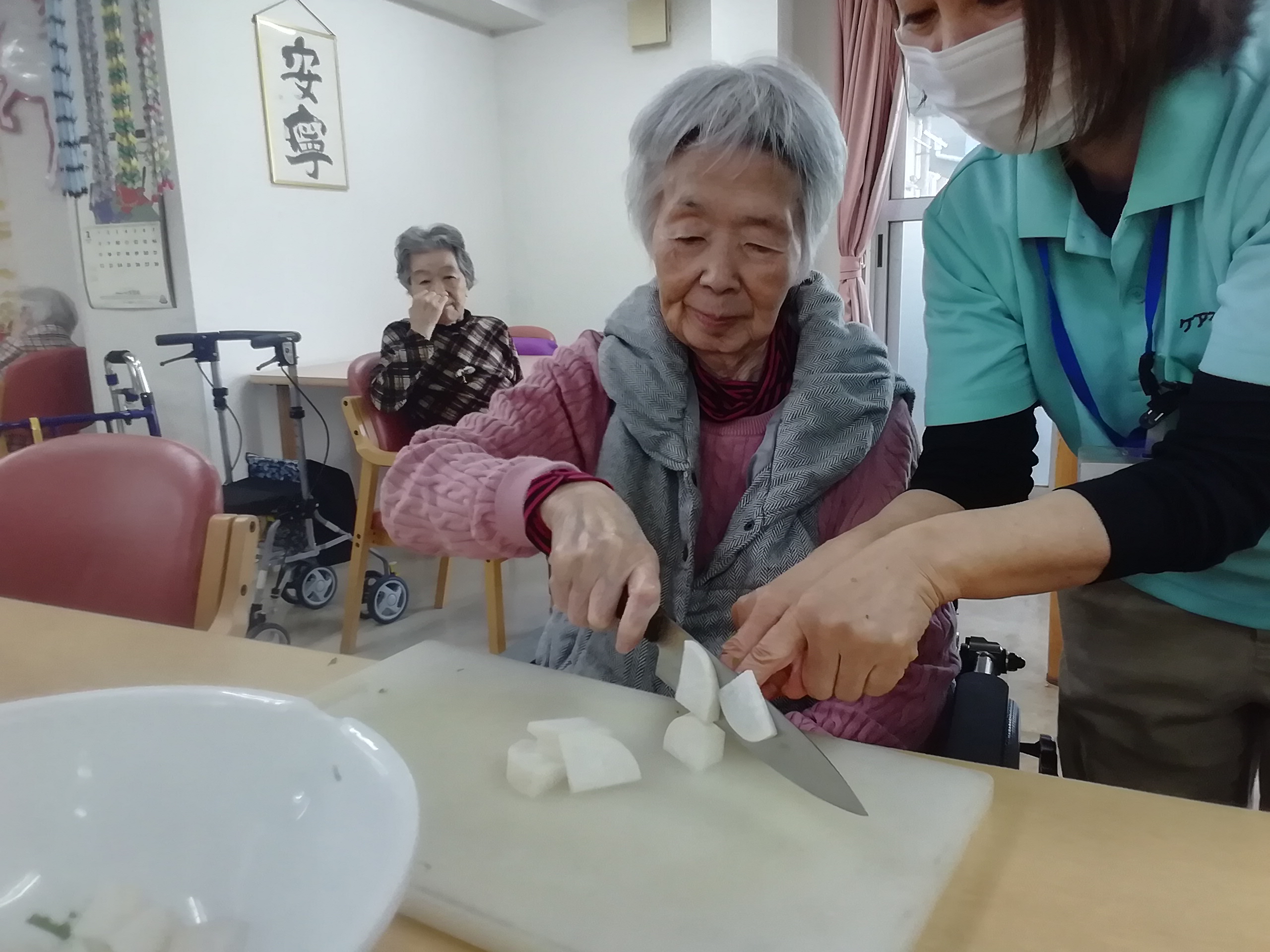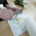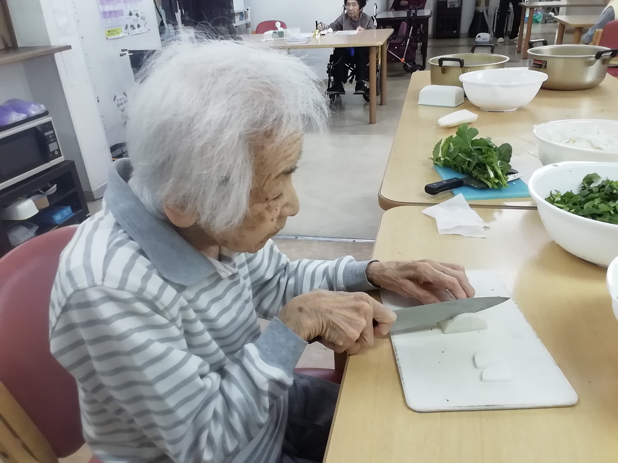 ゆうゆう畑で収穫した大根。先月はおでんを作り、今月は、豚汁を作りました。まずは、大根の収穫から見ていただきましょう。