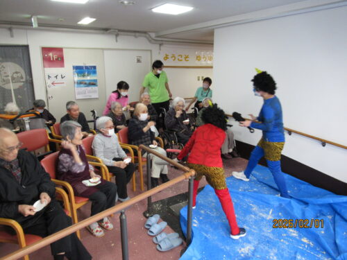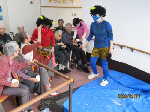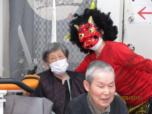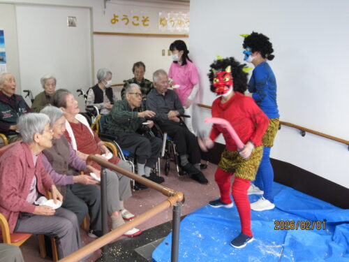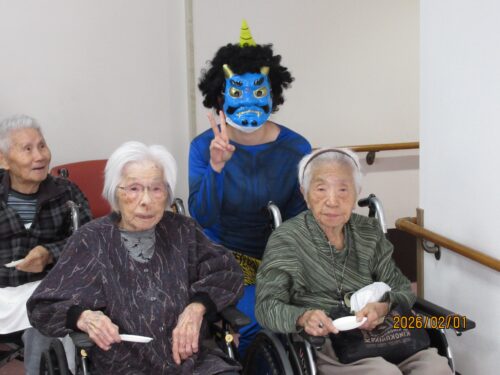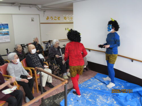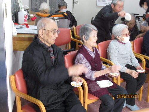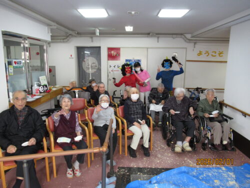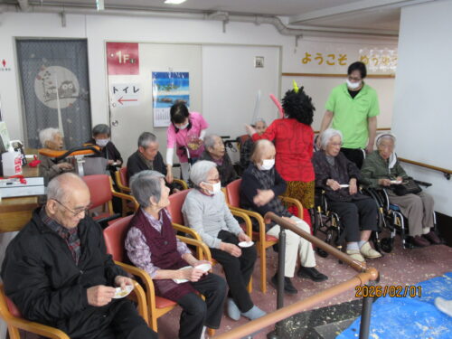 南山では少し早めの1日に、豆まきを2回に分けて行いました(*^▽^*)