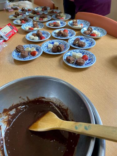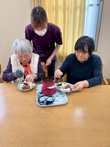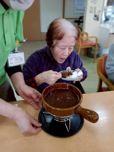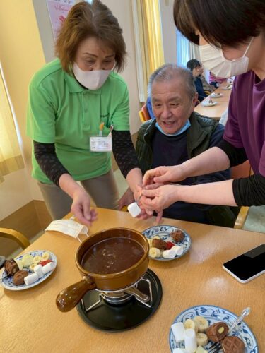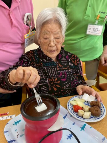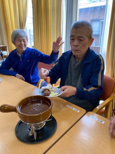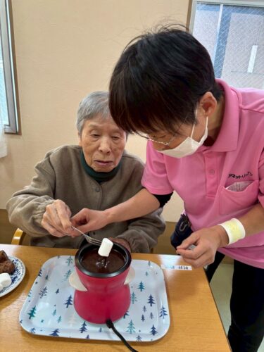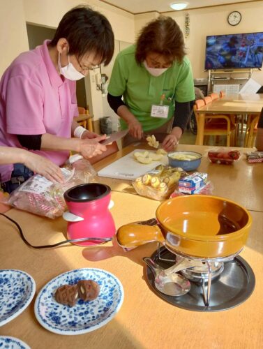 「イチゴやマシュマロにチョコをつけて食べるんですよ」