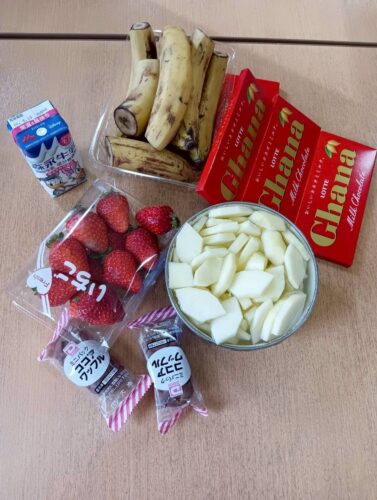 材料はバナナ・りんご・イチゴ・マシュマロ