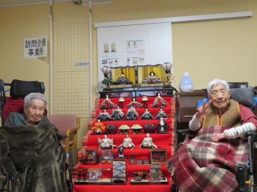 今年も玄関付近にひな人形を皆様で飾り、記念撮影を行いました📸