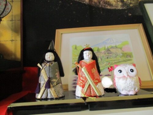 こちらのお雛様とフクロウはなんと利用者様が作ってくださった「木目込み人形」