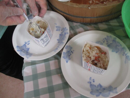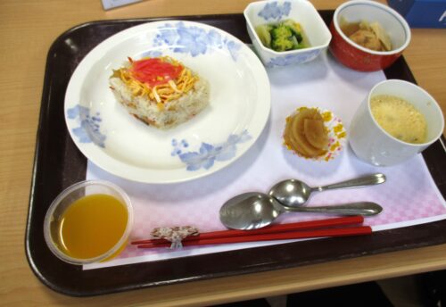 「美味しそう!」「何―?ちらし寿司が四角い形になっている(・∀・)」