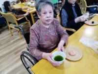みなさん、自分で好きな形にして抹茶と一緒にいただきました🍵