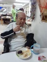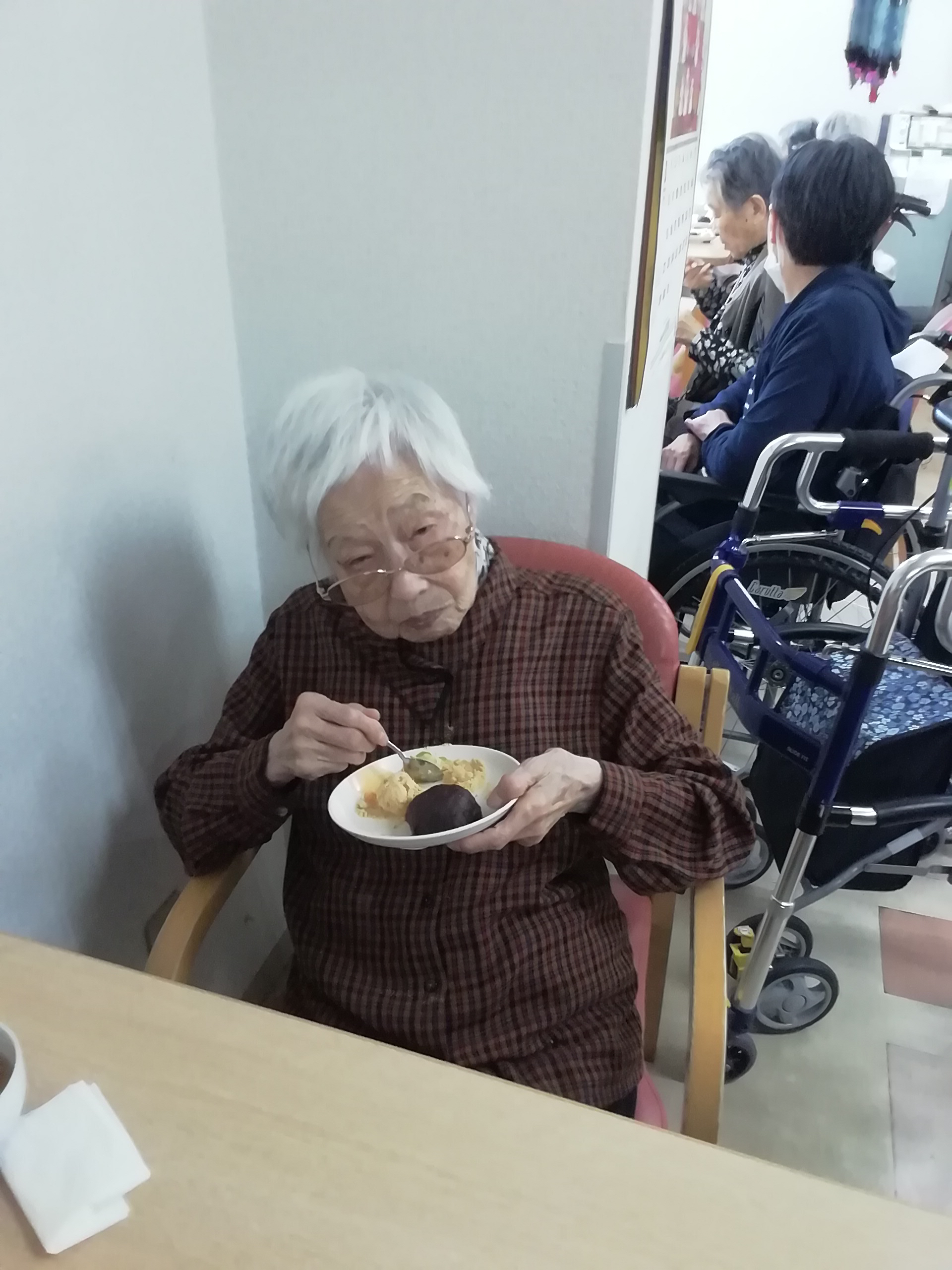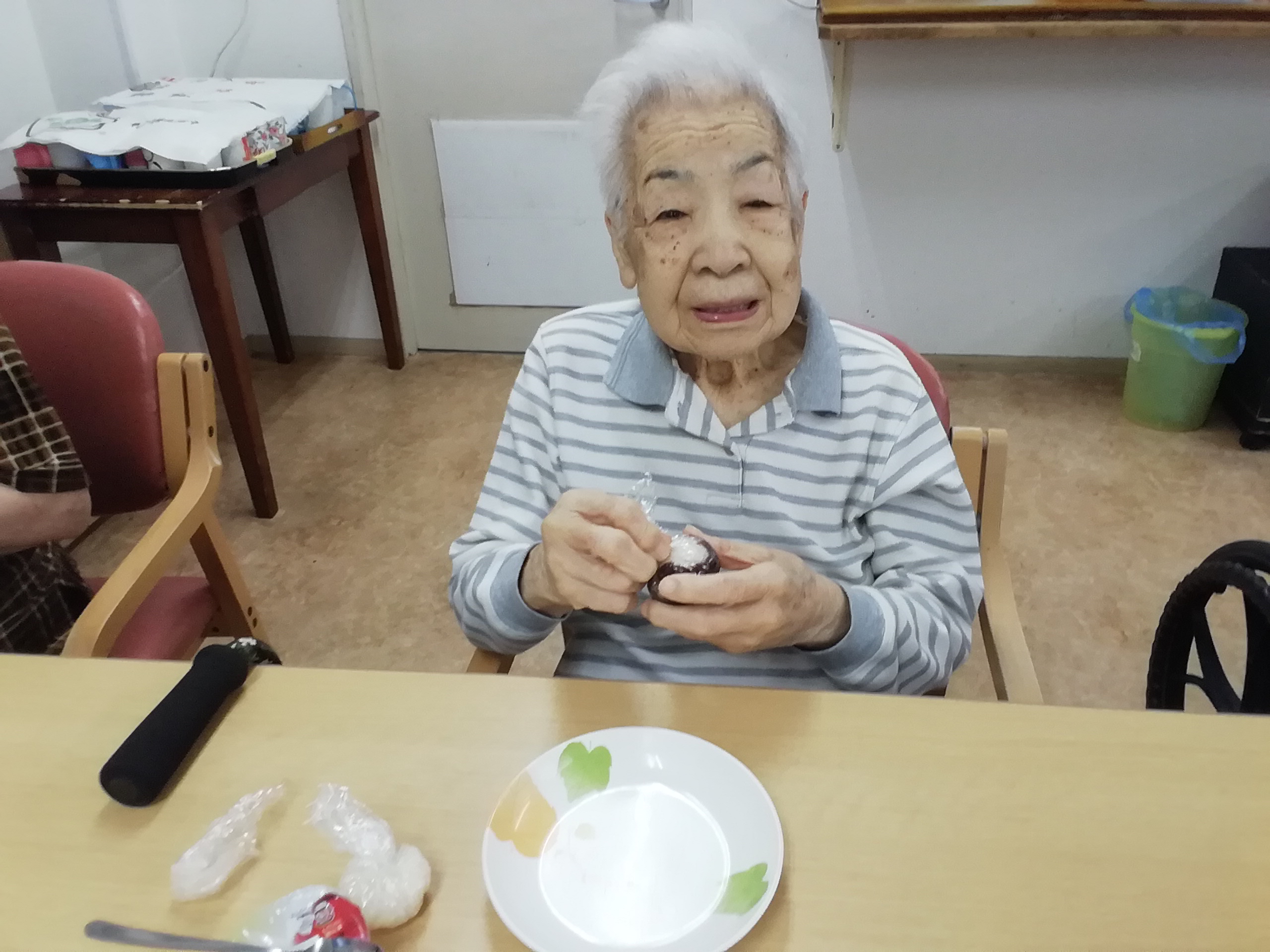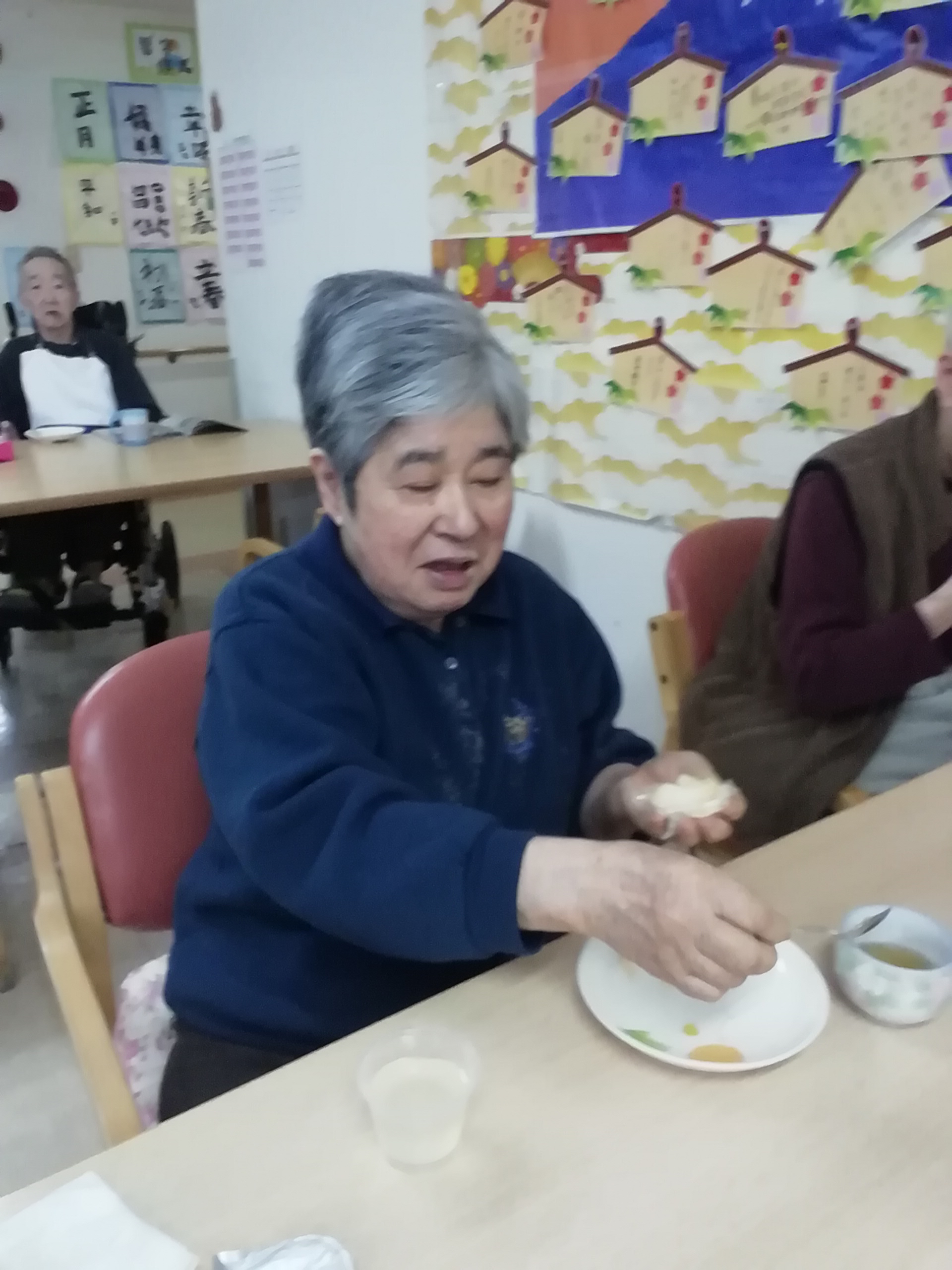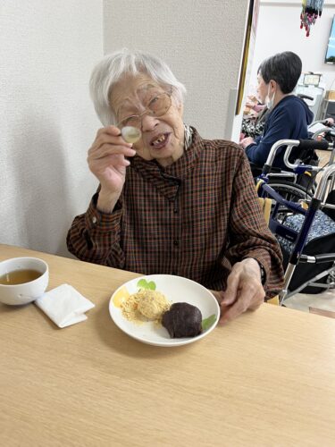 待ちきれず、つぶしてすぐに「パクリ」とつまんじゃう利用者様。
