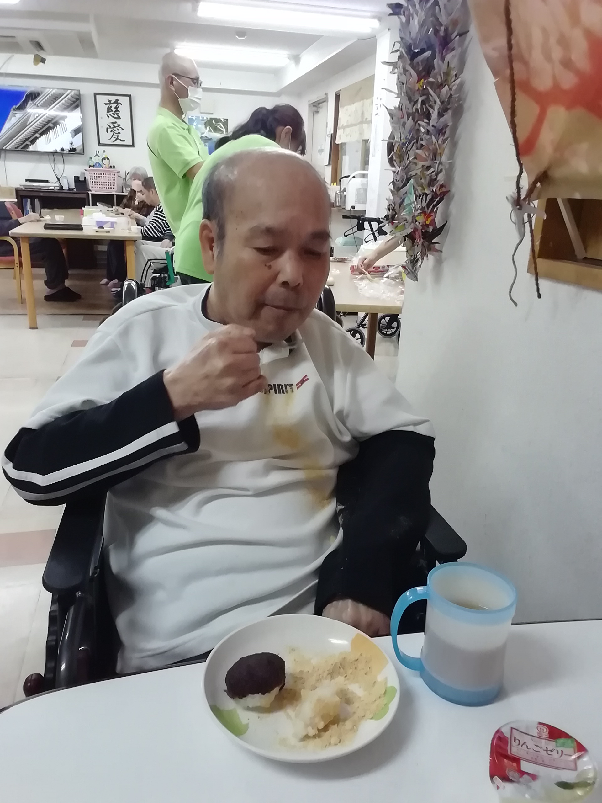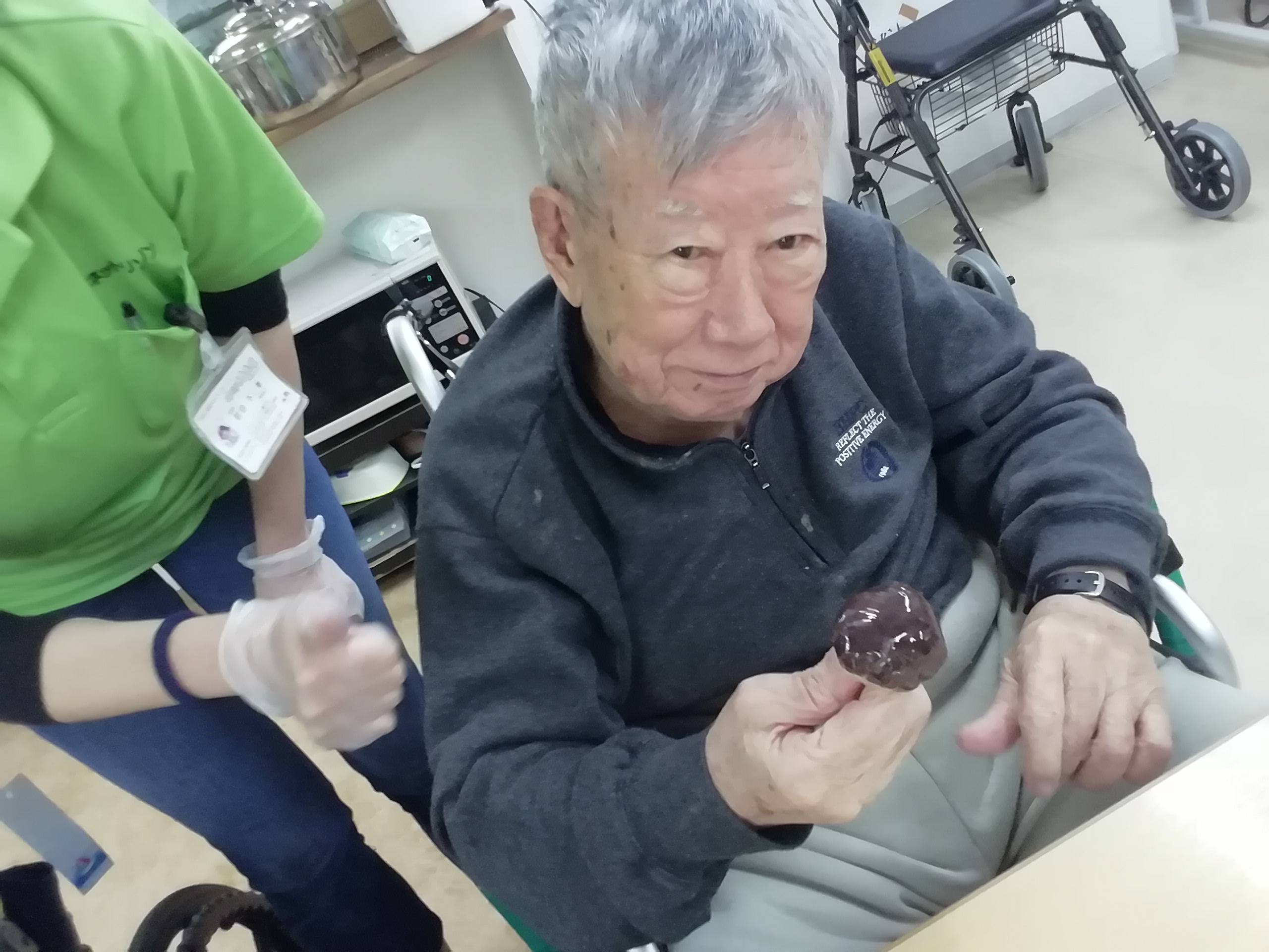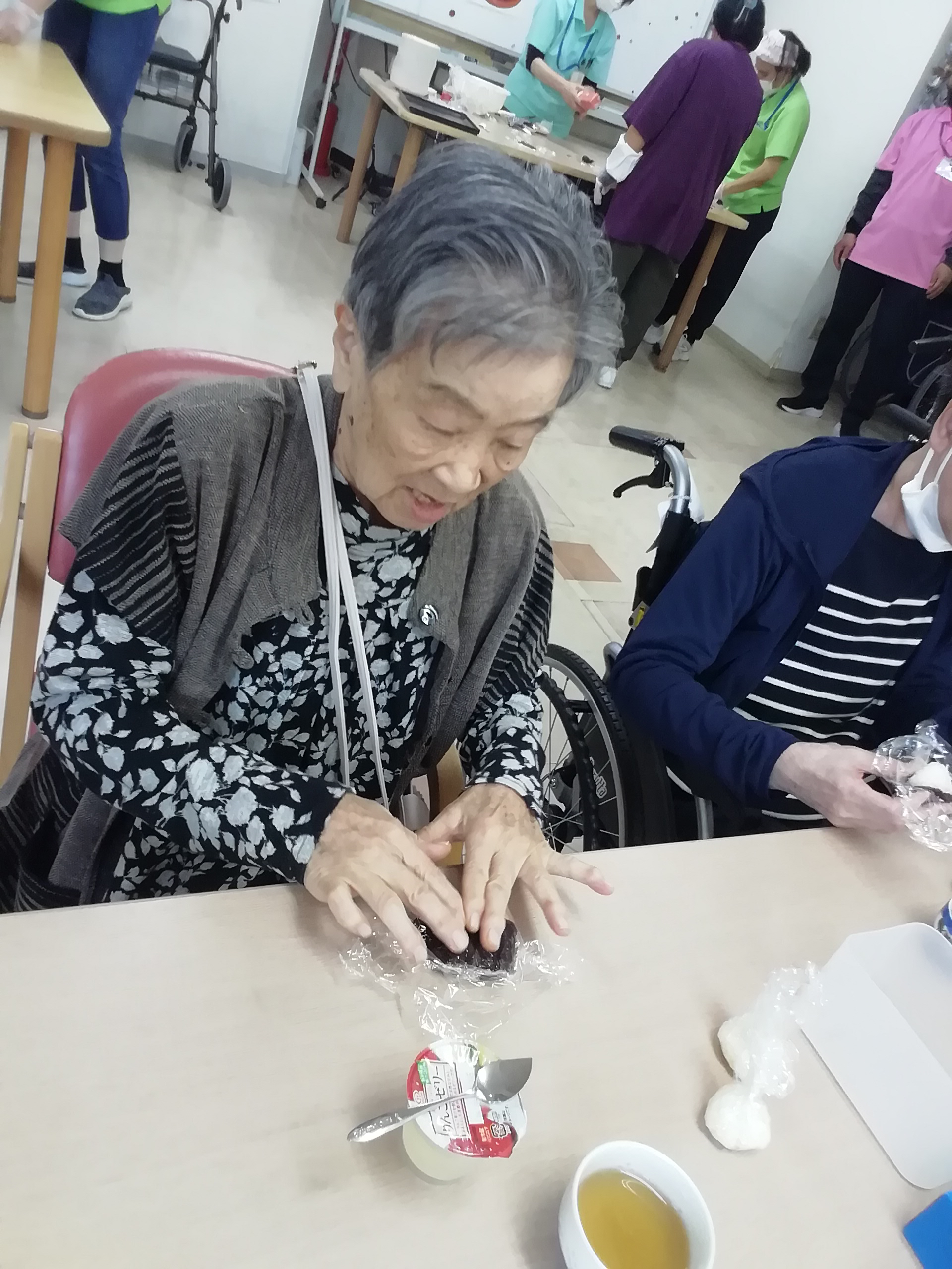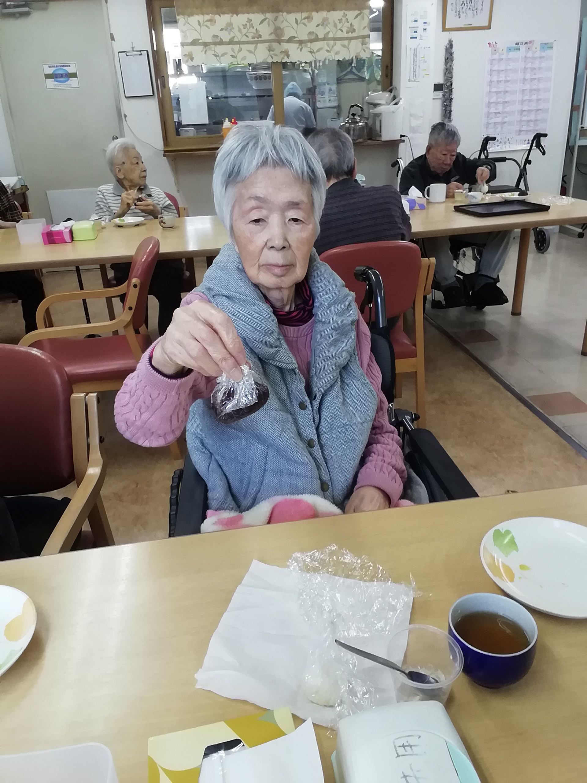 待ちきれず、つぶしてすぐに「パクリ」とつまんじゃう利用者様。