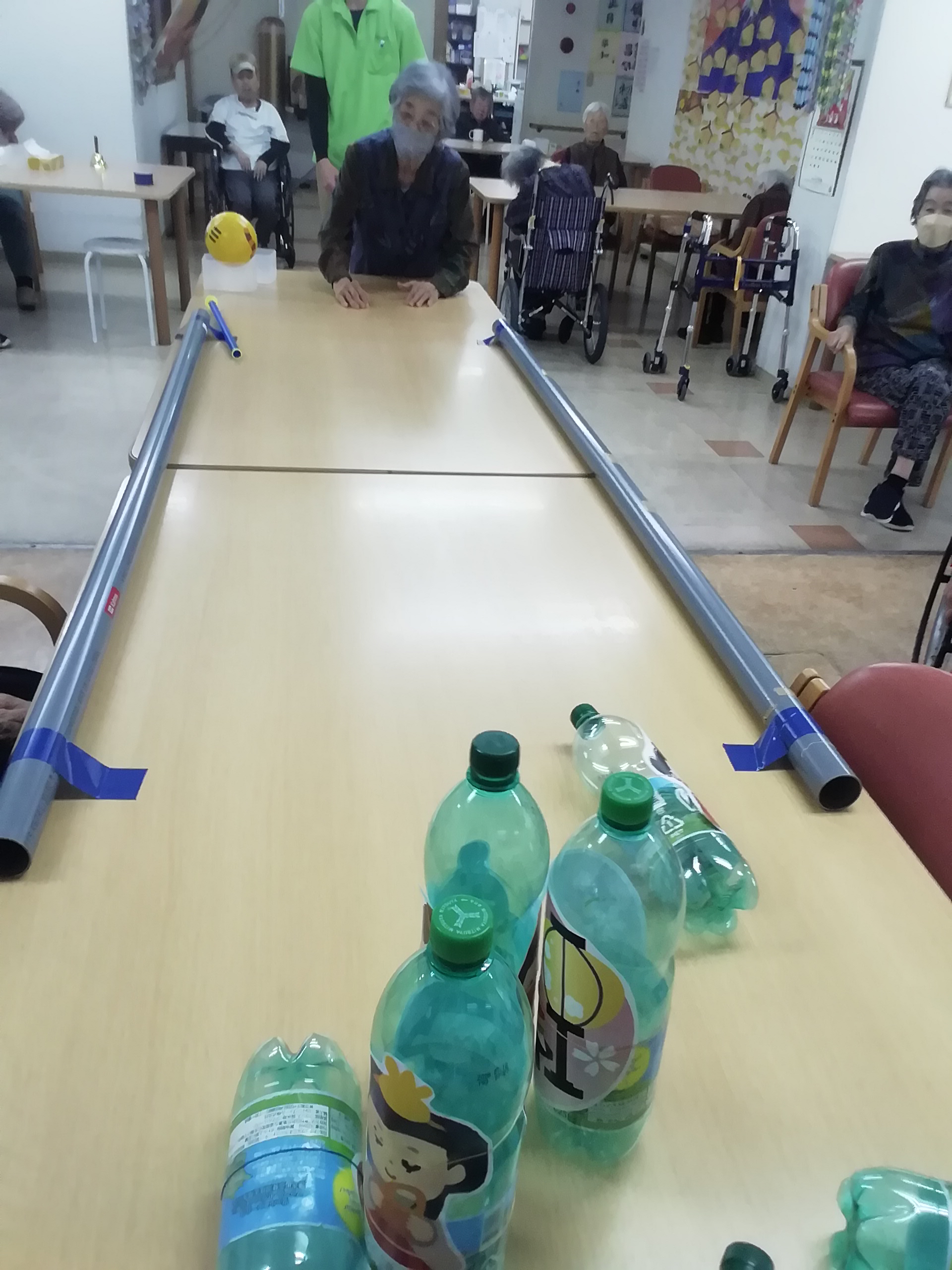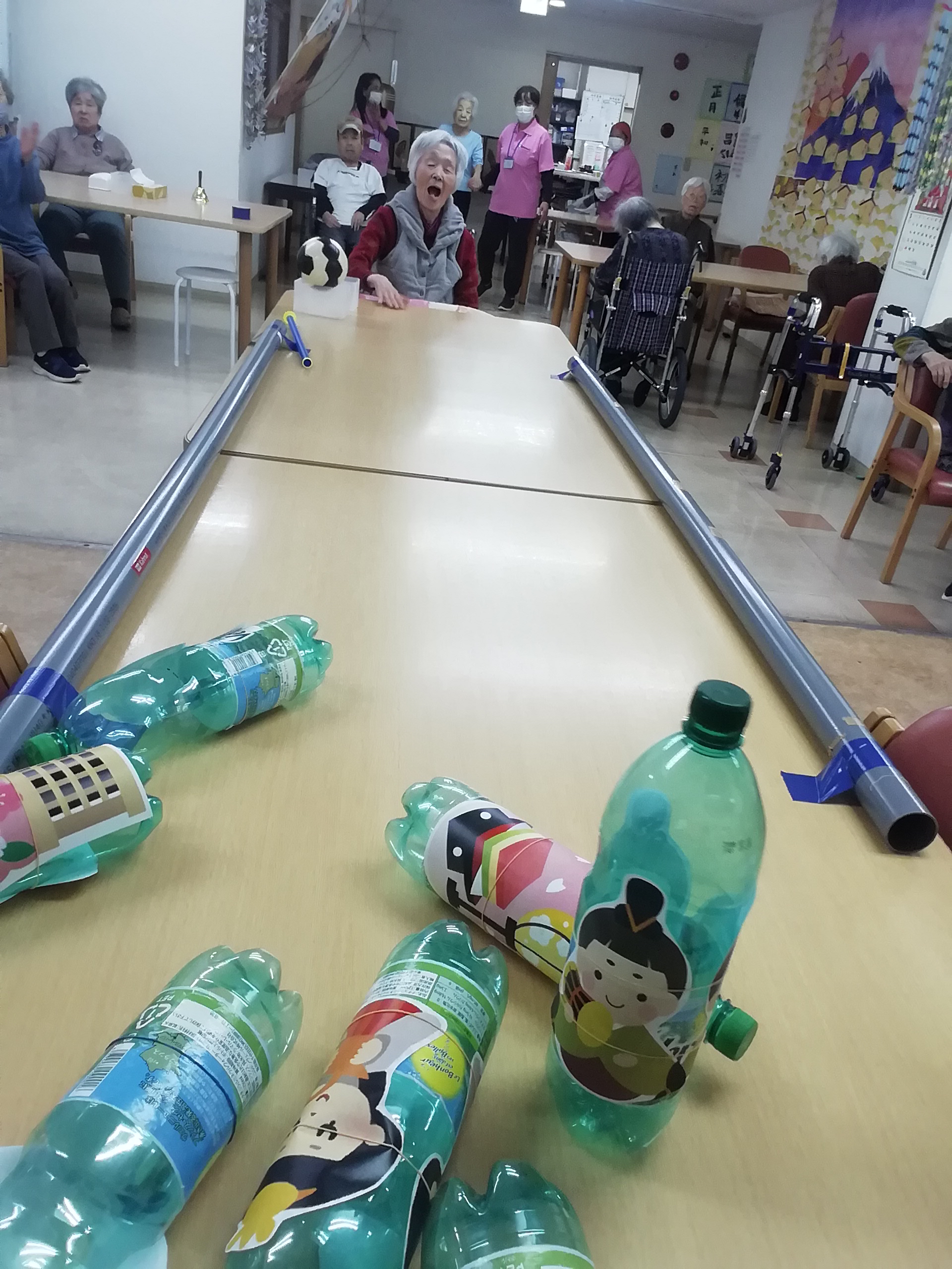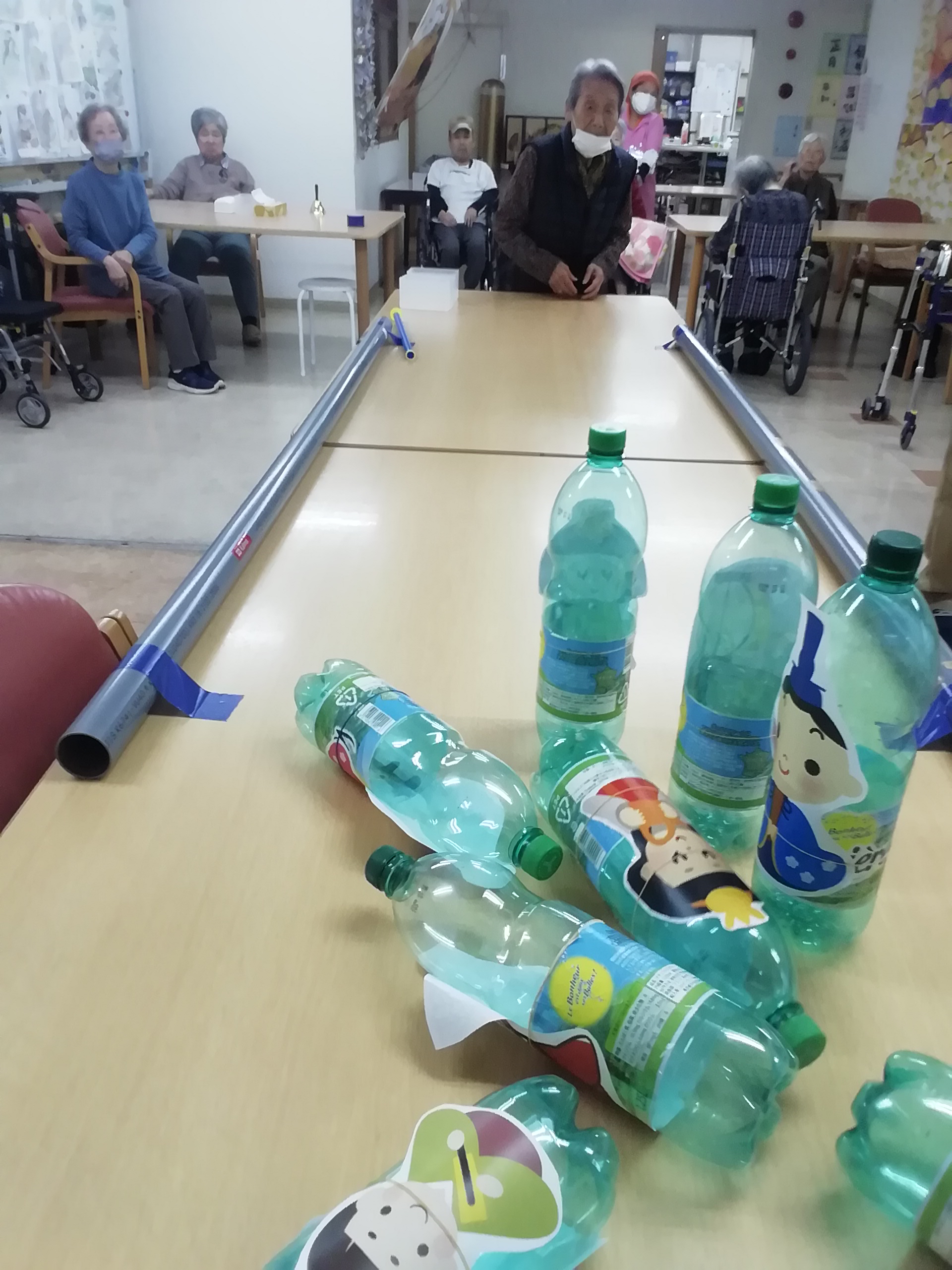 しっかりガーター止めの効果もあり、皆さん、たくさん倒しては起こして、忙しく楽しまれました。