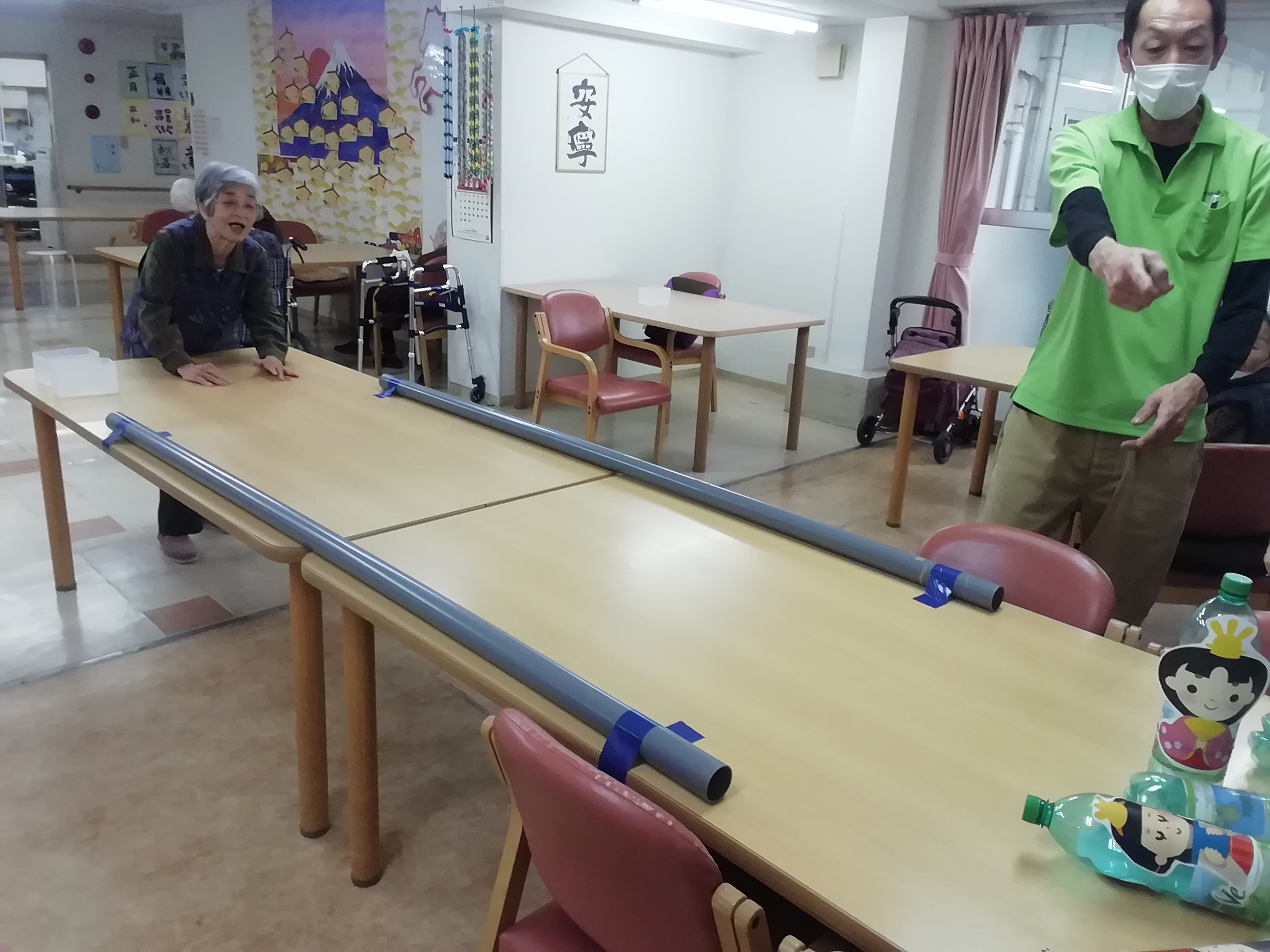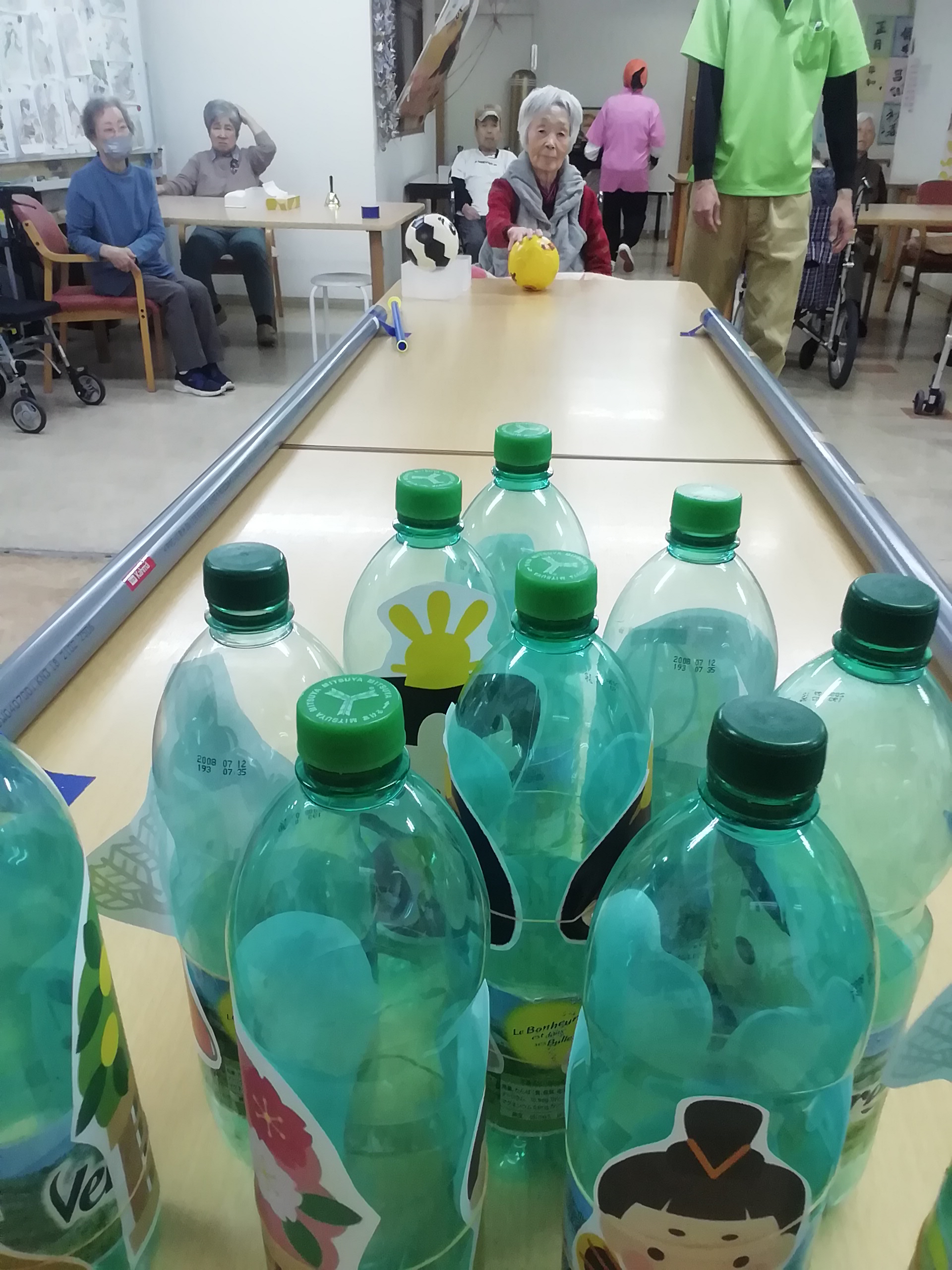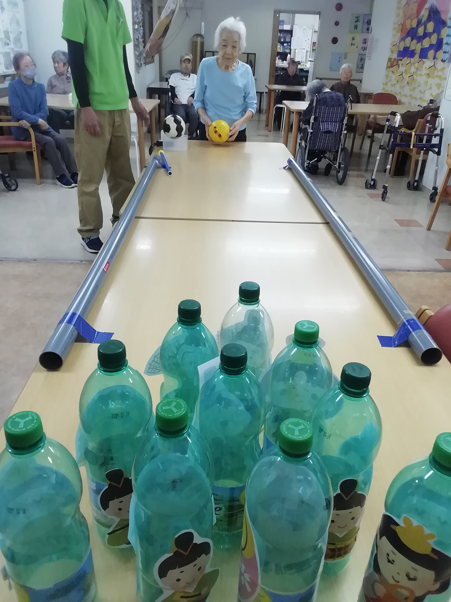 しっかりガーター止めの効果もあり、皆さん、たくさん倒しては起こして、忙しく楽しまれました。