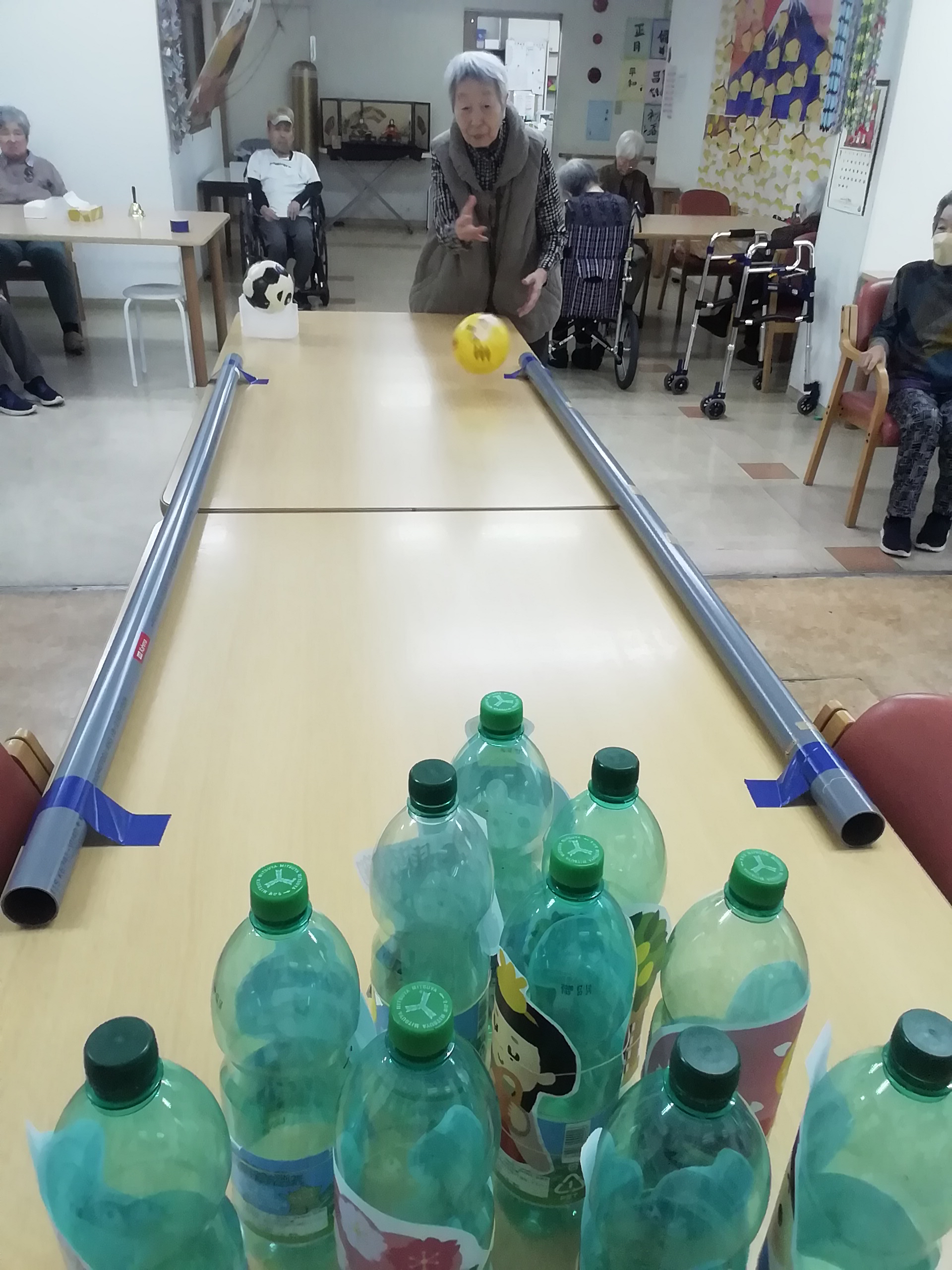 今年は、「ひな祭りボウリング」と題し、ピンがひな人形仕様となっています。