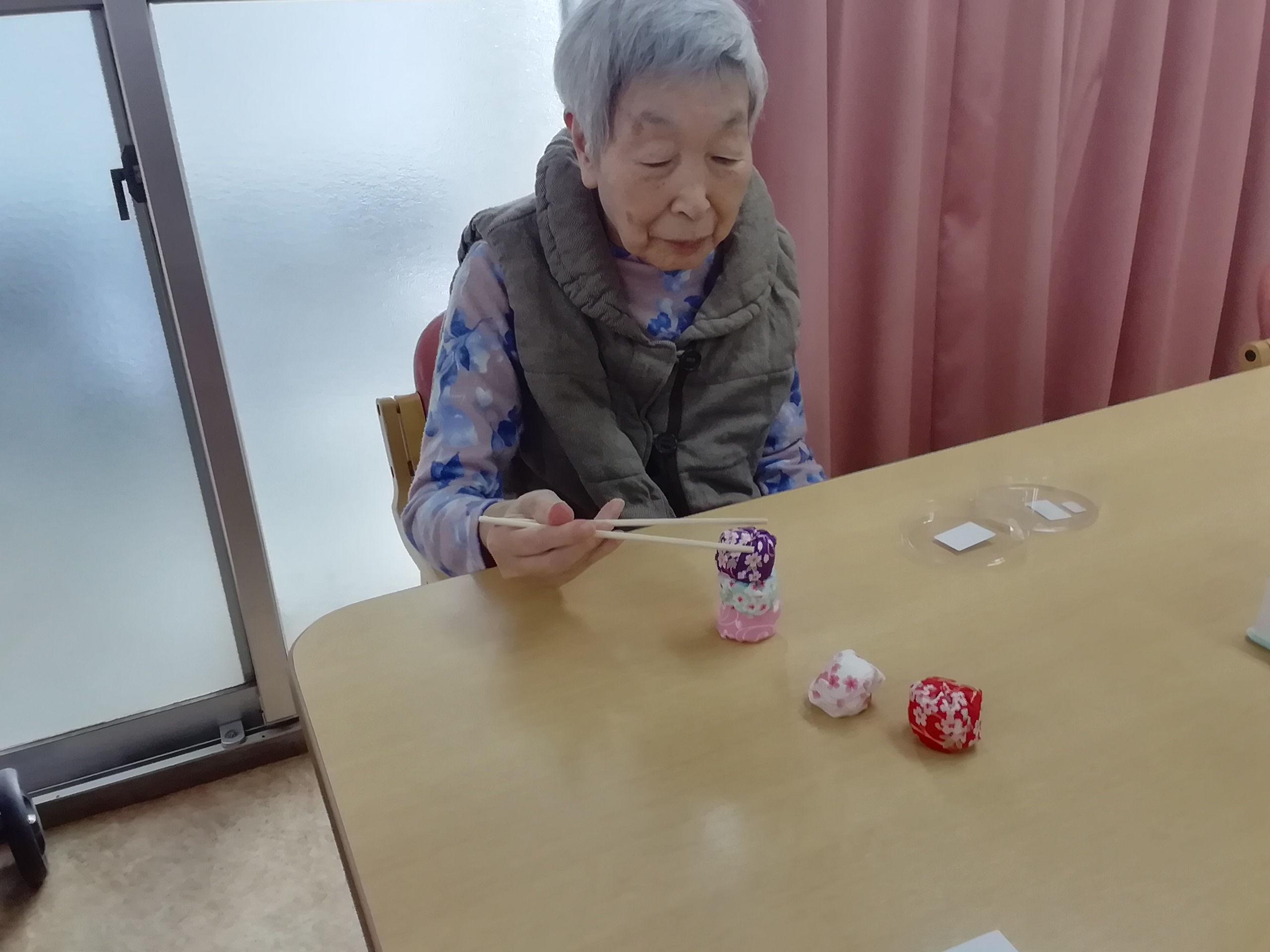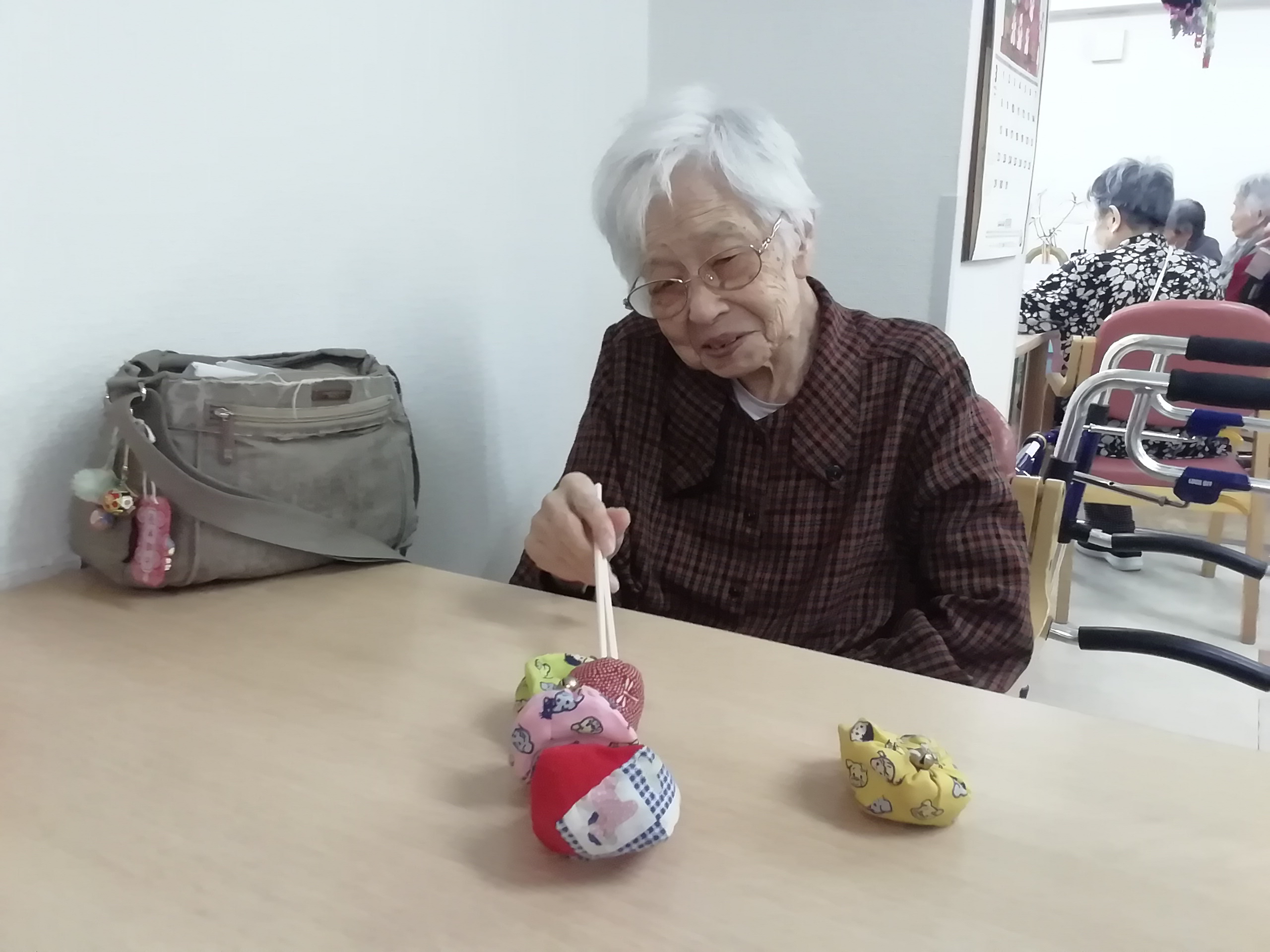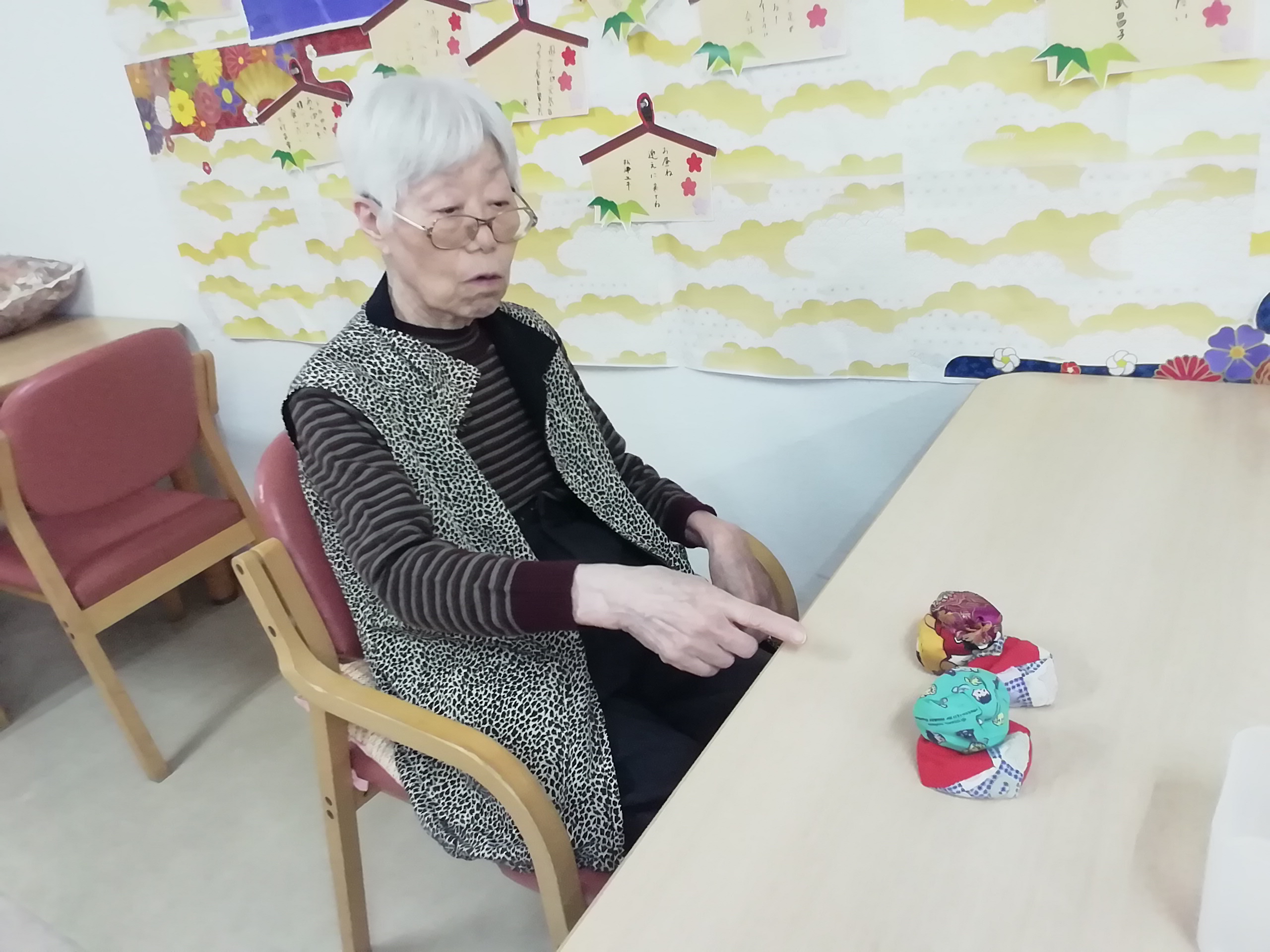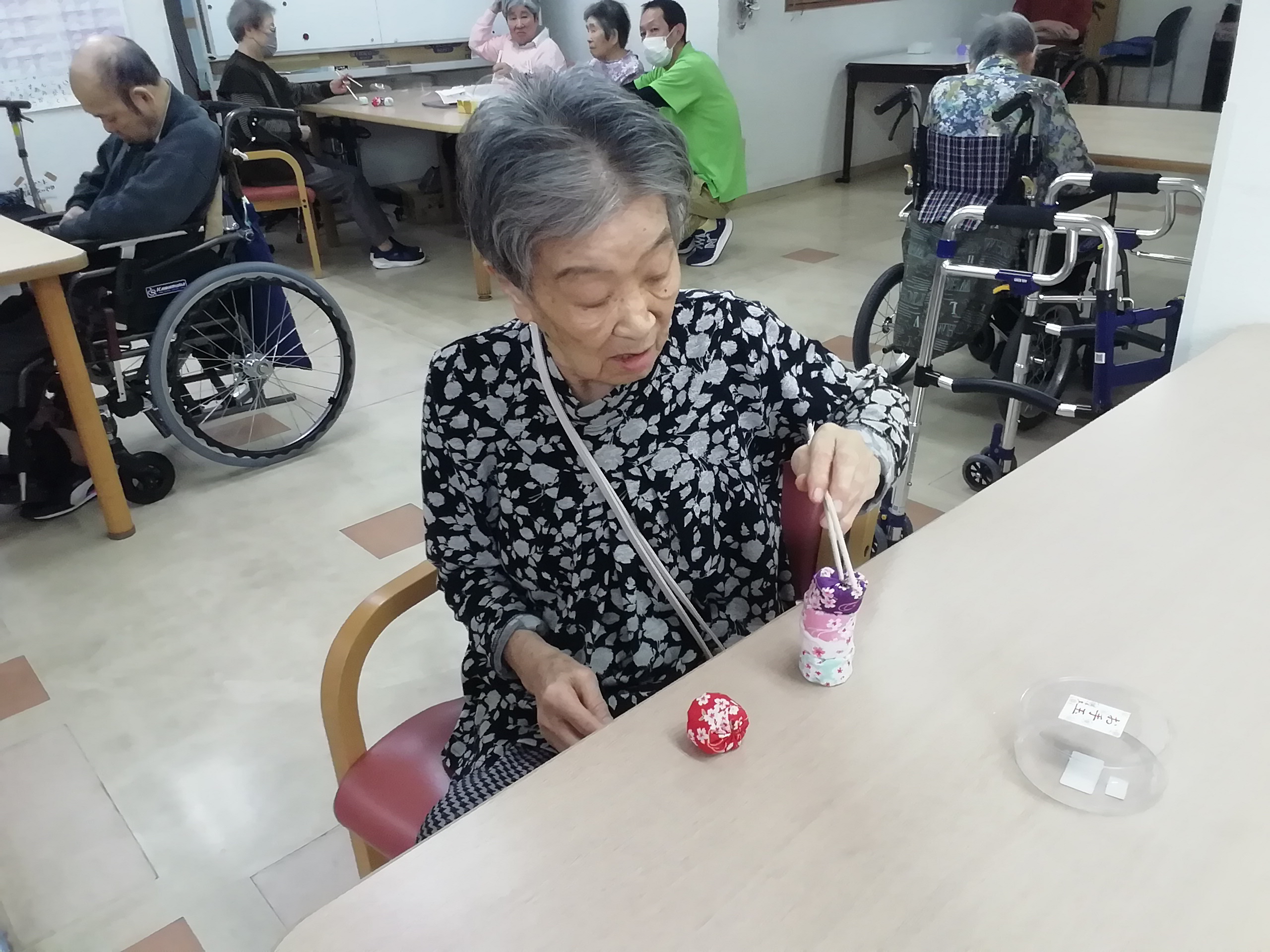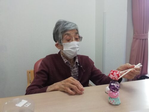 お手玉を手にして、「懐かしい~!」と利用者様。