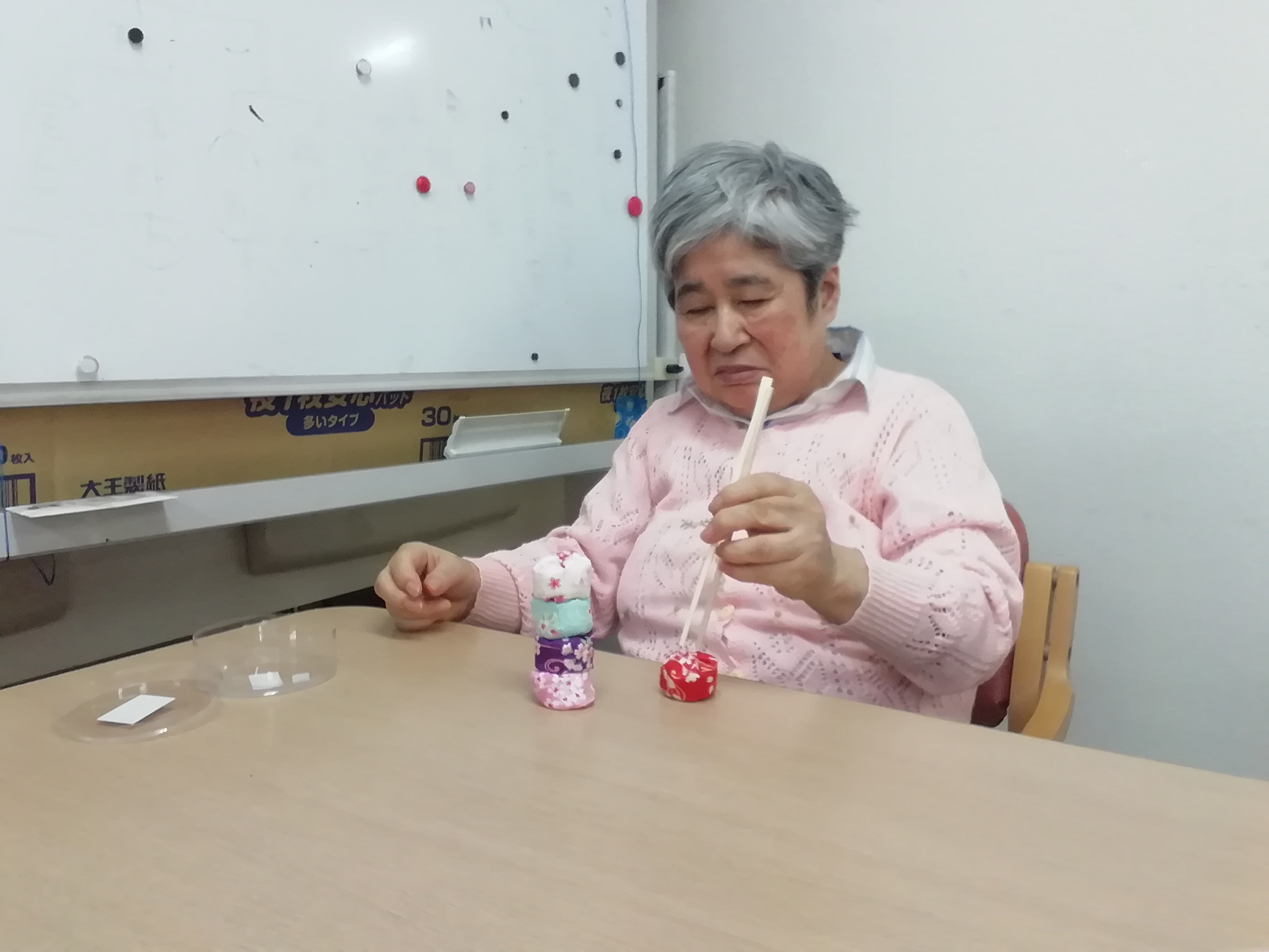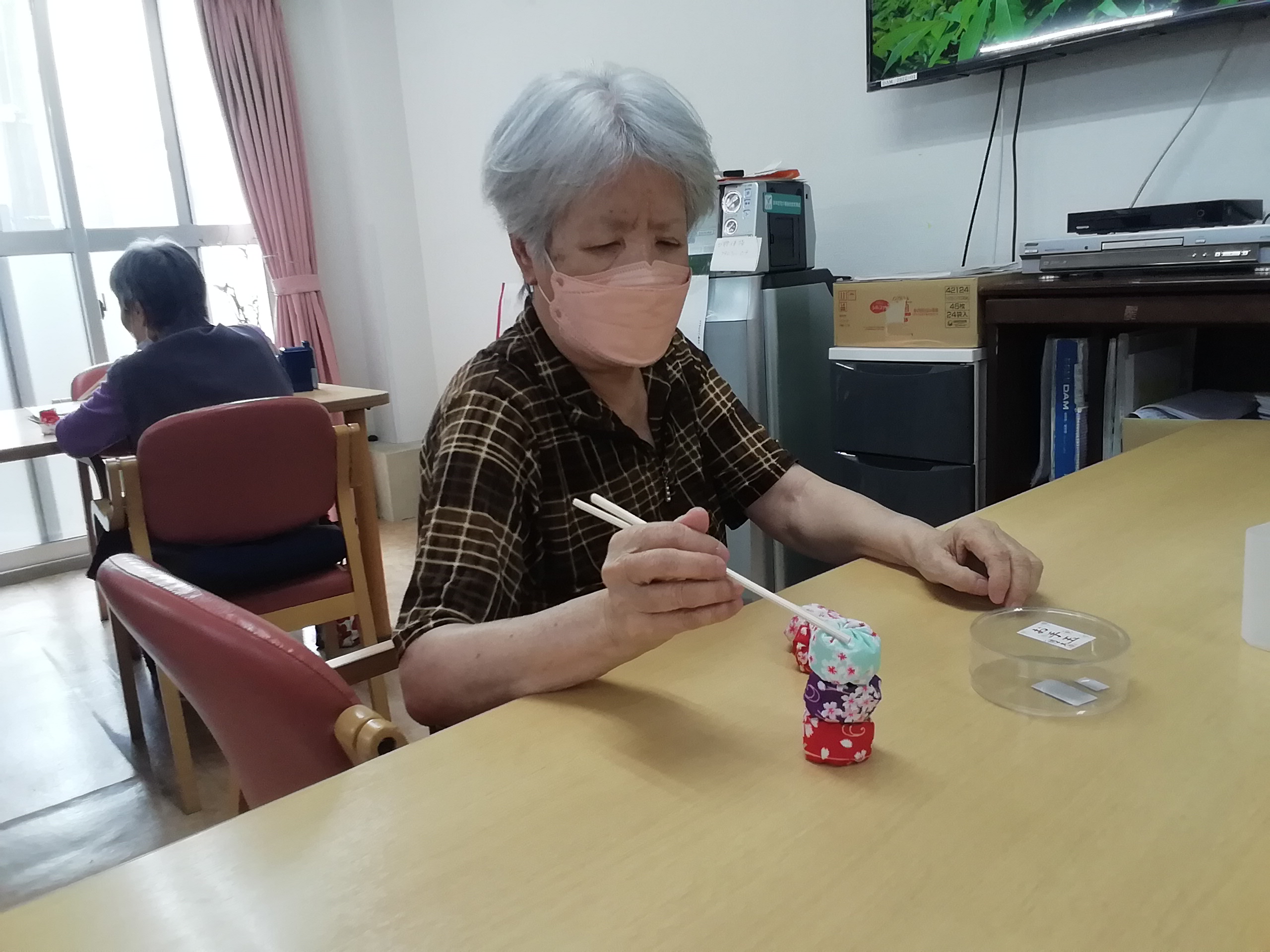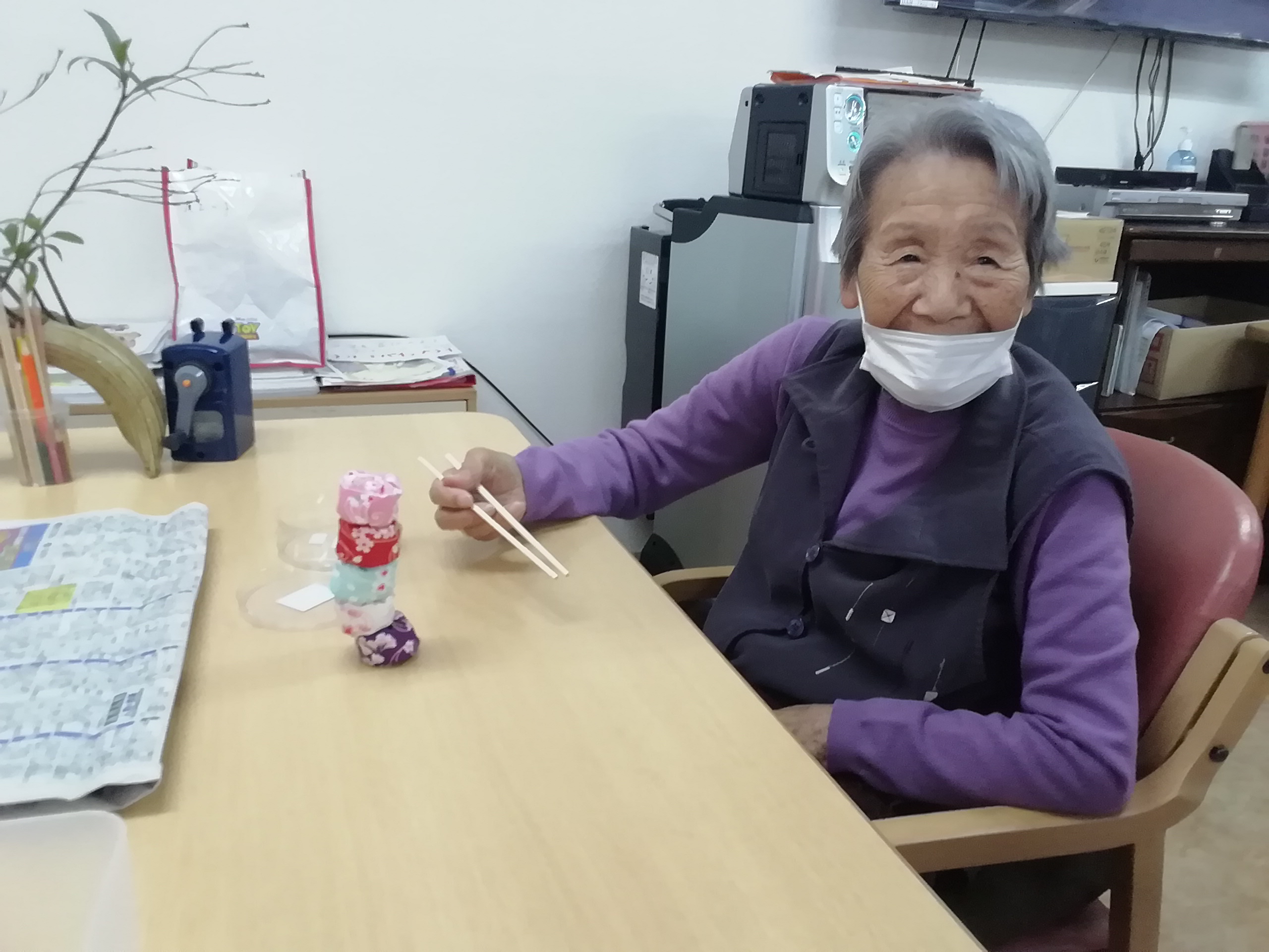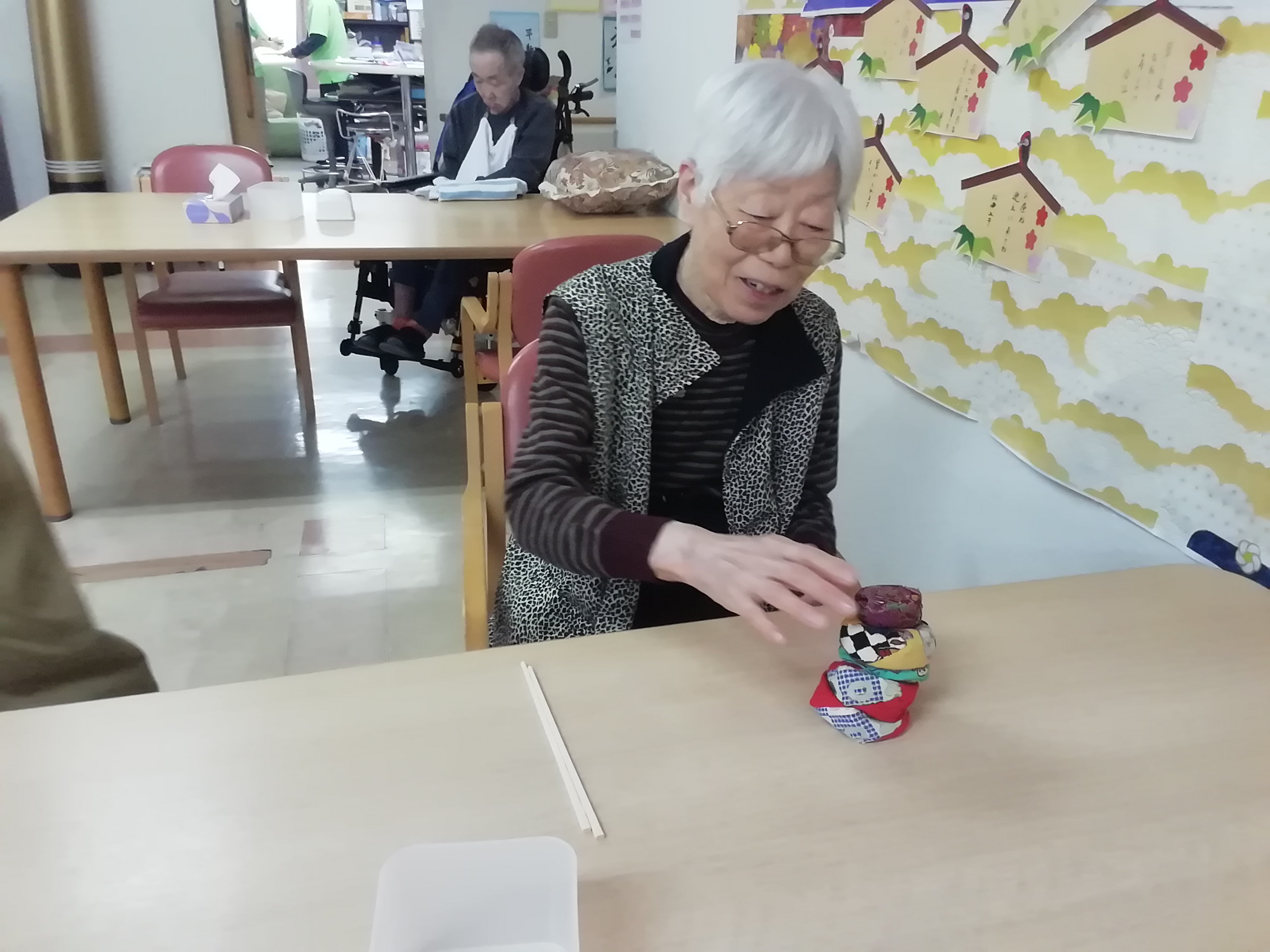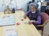 お手玉を手にして、「懐かしい~!」と利用者様。