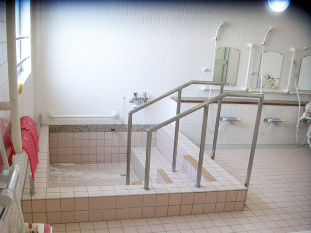 浴室。入浴時に介助者がつきます。衣類は洗濯してお返しします。